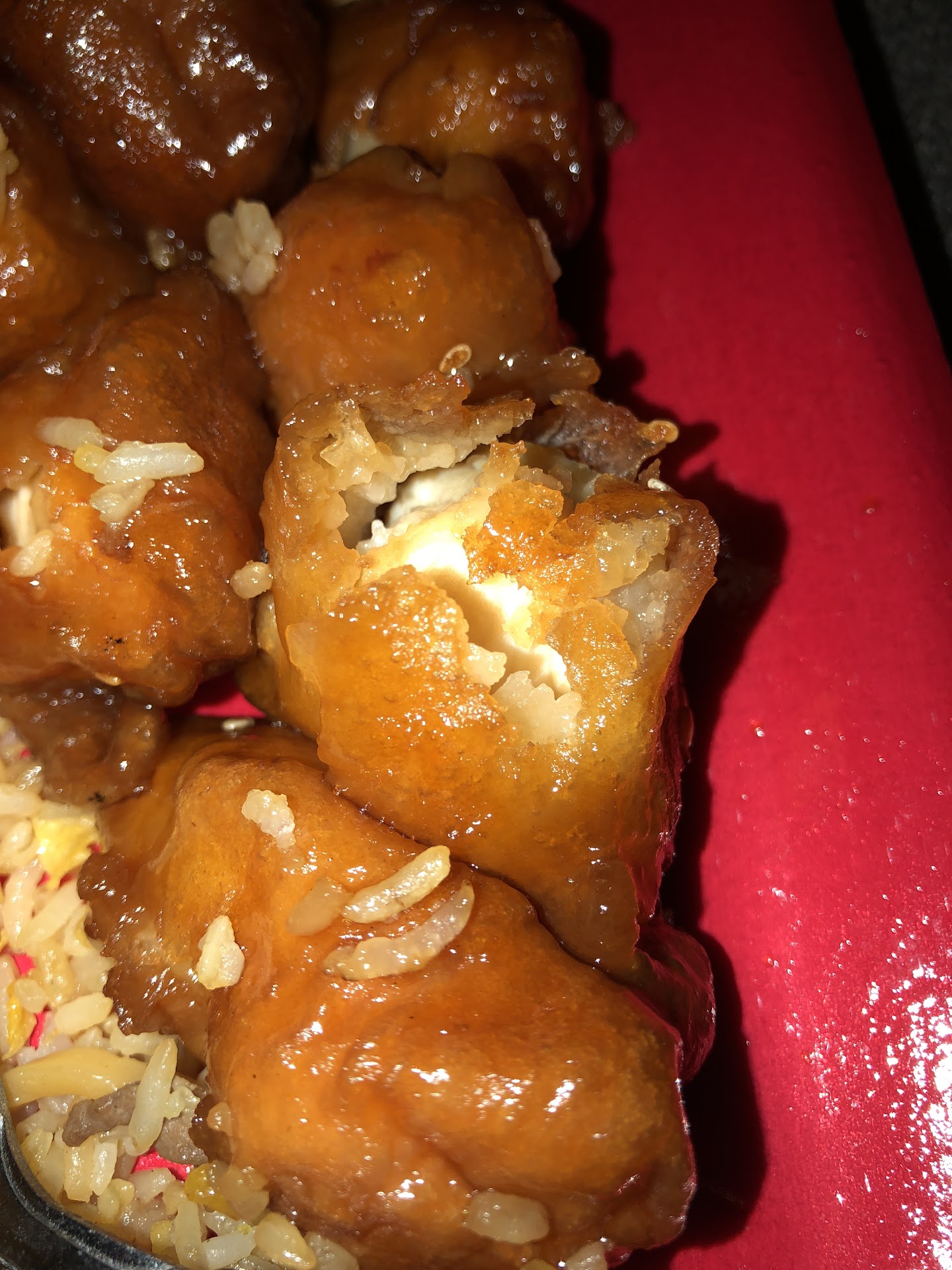 The egg foo young was eggs with onions DROWNED in sauce. Presentation is fairly important, and this was the ugliest egg foo young I've ever seen. As for the crispy noodles with chicken, I couldn't separate the noodles into portions. It doesn't matter anyway because it was so salty that I ended up throwing it away. The fried rice was okay, but I can make it better.