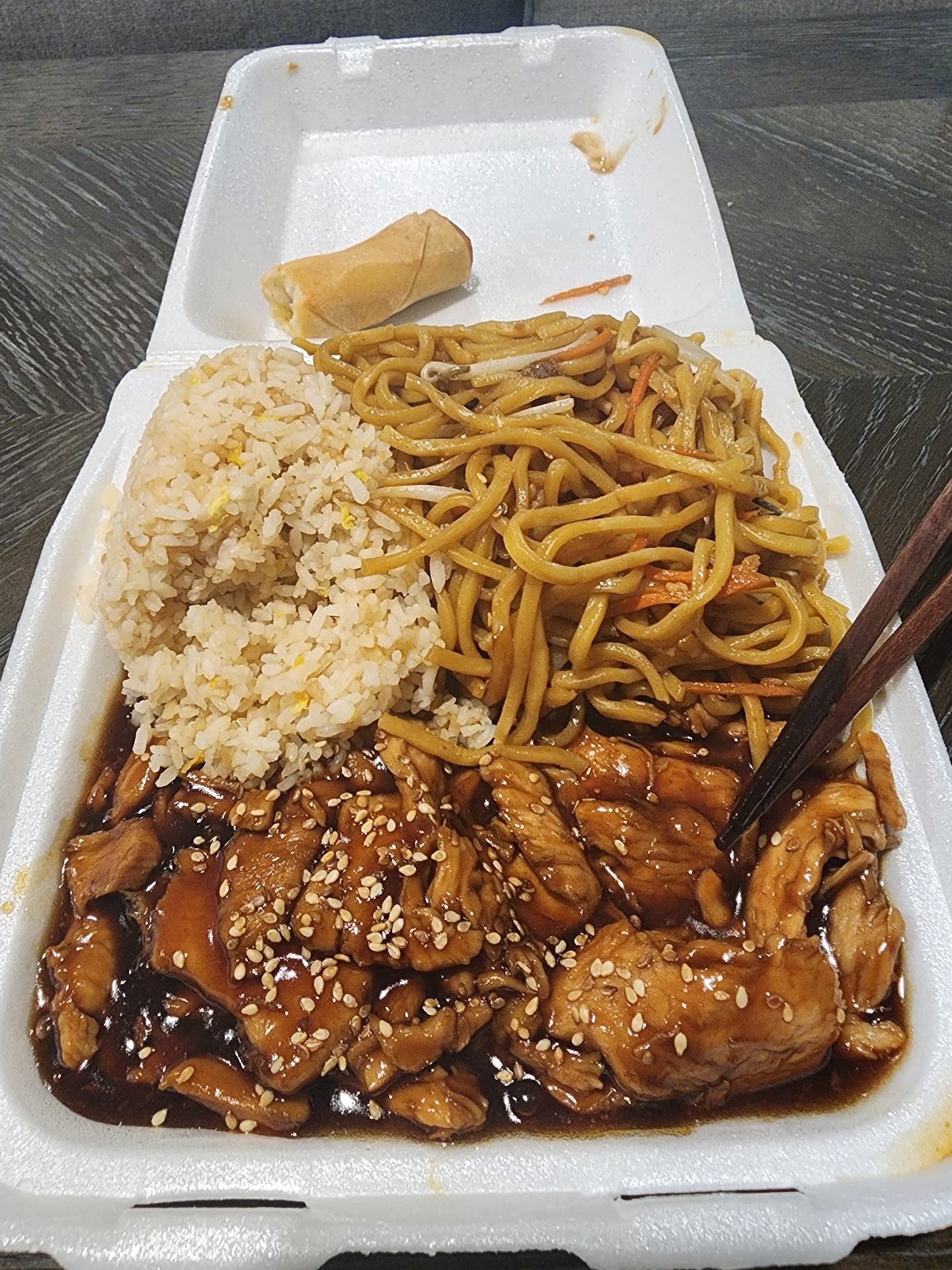the chow mein, the fried rice, eggroll, and wonton had decent flavor but the normal seasoning or preparation i am use to but tasted ok only side note is the fried rice had no egg or veggies in it just rice.