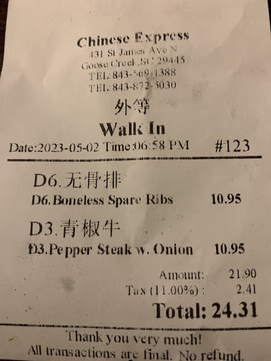 I ordered online (and paid $1 to do so) and received a text confirming my order with an estimated time for pickup and a message that I would receive text updates on my order status. I waited until 10 minutes after my estimated time and hadn’t received a text that it was ready, so I went in to see if it was ready. It had been sitting for a while. I walked in at the same time as several other people but was the first in line. I waited an additional five minutes for the girl at the register to look up from her phone and acknowledge me. While I’m waiting to get rice that I ordered at the restaurant (didn’t realize my meal didn’t come with it, that was on me), a delivery service driver behind me gave the girl at the register the order number he was there to get, she told him that was already picked up. He verified through the app that it wasn’t picked up, so someone else was given their order. I’m guessing that I didn’t get the text that my order was ready because she couldn’t be bothered to click that on the computer. It’s a shame, because the food was decent. We ordered a family meal that comes with a 1/2 gallon of tea, and added white rice. It was an about $60 but it will feed my family of 4 for a few meals. I would have probably given it 3 or 4 stars if the service wasn’t awful! The inside of the restaurant didn’t make me feel great about the cleanliness of the kitchen, but it’s basically Chinese fast food takeout, so I’m trying not to...
