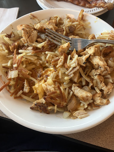 We ordered our drinks, then our food. Around an hour later, we all received the wrong orders....twice. My mother requested a waffle to be delivered to-go after her meal. She received it first, on a plate. Without a word she nibbled at it with contempt for a seemingly careless waitress. An order of a chicken biscuit was delivered as an egg buscuit. My chili-cheese ommlet was delivered as a ham and cheese minus chili.