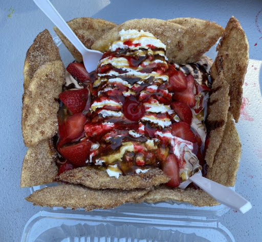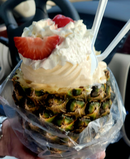 I bought the Ultimate Pineapple! It was delicious, too. It was vanilla ice cream (soft serve, I believe) topped with sliced strawberries & Pineapple, and whipped cream served inside a pineapple. It was a little pricey at $12, however, if you love the ingredients I mentioned above, it is well worth the $$! It's enough to share with your honey, tell them you...