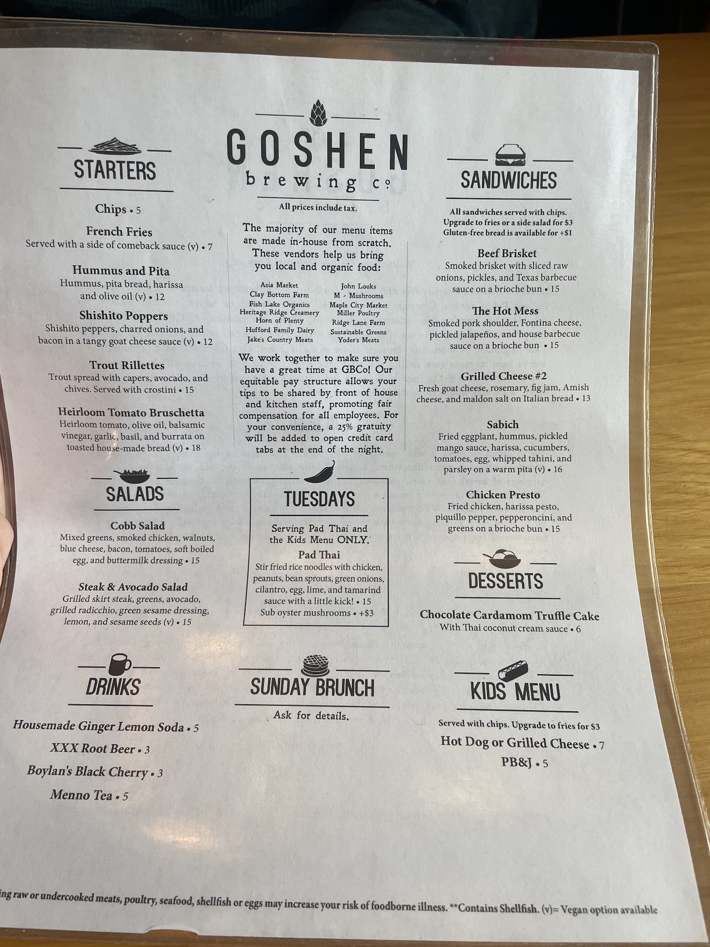 Read moreTo begin, I must state my beer preference. I usually order from medium to dark ambers or stouts and porters. I prefer my beer to be malty, to only slightly hoppy. IPAs are not my first choice when ordering beer, and I do not enjoy heavily hopped beers. I primarily visited Goshen Brewing Company to try the beer. The food was secondary. I ordered a sampler of the beers, and a pork sandwich. My initial impression of the beer was that it seemed much lighter consistency compared to other beers (including IPAs) from other brewing places I have visited. The taste was not bad, but neither was it impressive. Truth be told, I can get better beer from a good beer purchased at a party store. They also did not have a good variety of beer styles. Color varied from a medium amber to a light amber color. Missing were the porters or stouts. About half of the beers were IPAs and the non IPA were almost too light in flavor. That said, the food was very good. The portions were just right. The restaurant was pleasant inside. The food prices are comparable to other similar restaurants. The beer price was also comparable or slightly lower than similar restaurants. Would I go back? Probably, if I were going with friends. But, if I were looking to enjoy a really good beer, this would not be high on my list of...