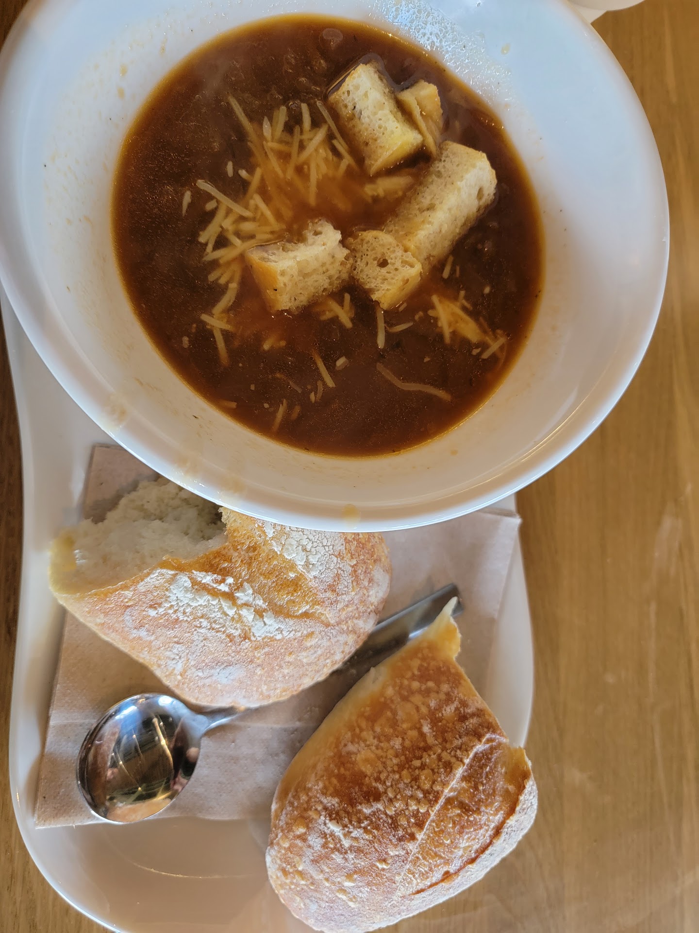 Read moreAfter looking on Google for places that were open for a late dinner, we chose Panera. Open until 9pm according to Google. We arrived at 7pm. We ordered over $80 worth of food to dine in. There were many ppl in a closed off area in the dining room for training. When our pager rattled we went to get our food there was no one behind the counter. It was sitting there with missing items. We asked an employee in the diningroom for help and were told,"sorry we are closed". We responded that we are missing items. A manager came over and was more than rude . She acted like we were more than a bother to her. She rudely said that a sign on the door posted they were closing at 730 for training, as does their website. System wide all stores are closed. "But we wont kick you out" she said. We used google maps, and saw no sign on the door even upon leaving after eating. The food we paid $80+ for was NOT up to Panera standards. The soups were cold, the sandwiches were slapped together and missing ingredients. We should have been told at the register upon ordering, for dine in, at 7pm, that the place was closing at 7:30. I have never had a manager at a Panera show the attitude and unprofessionalism this woman did. I would not recommend this...