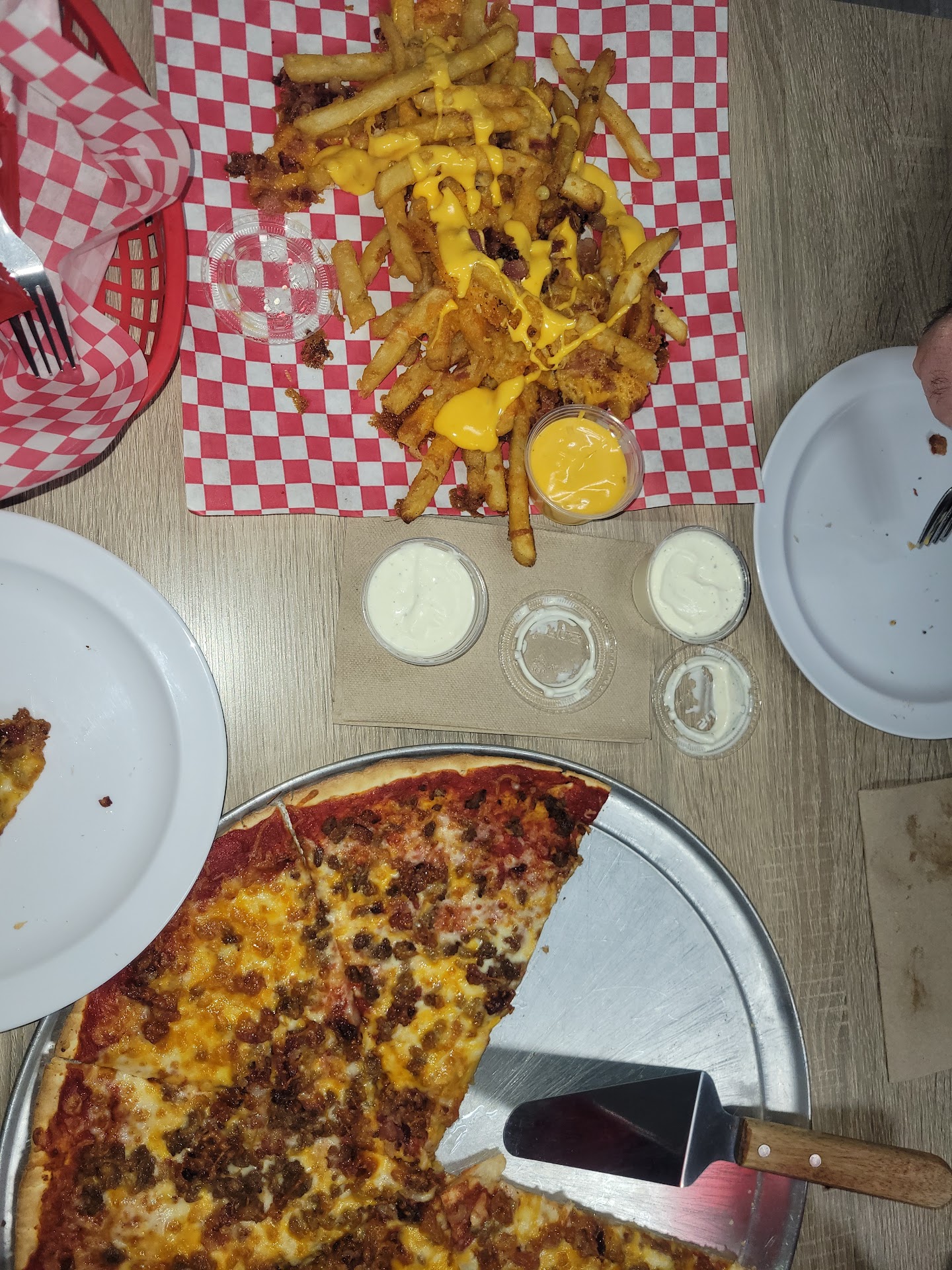 Read moreDO NOT WASTE YOUR GAS, TIME OR MONEY THERE! The BIGGEST waste of money($38 for 2 sodas and pizza) When we arrived- ONLY CUSTOMERS in the place. While the server was taking our order, there were 'regulars' that came in. Now, instead of being professional and telling them she wait a second, she stops OUR order and converses with them. My sister started to ask her a question and she tells HER to wait because she had to type in all of the special requests we had( all of the peppers on 1/2 and please party cut it). Really that is special? 47 minutes our pizza finally comes out- we were standing at the register to pay for the drinks. They put the peppers in a SANDWICH BASKET INSTEAD OF BAKING THEM ON THE PIZZA. Then she proceeds to tell us they only had 4 people in the kitchen and 25 orders! REALLY? Coming from 28 years in the restaurant industry (some was pizza) hard to believe. She began getting very rude, unprofessional, and sarcastic. NOW, let me tell you- we counted AT LEAST 6 carry out orders leave while we were waiting- and there was ONLY 2 PIZZAS that left. The majority of the orders were in square containers! The pizza SUCKS-NO SAUCE, for a $35 pizza, you would expect nice toppings! NO WAY! All of the extra cheese that was supposed to be on it-WHERE IS IT? crust under cooked, DISGUSTING! please go to Casey's or the pizza place in Paragon if you want REAL PIZZA! DON'T WASTE YOUR HARD EARNED MONEY OR TIME ON THIS...