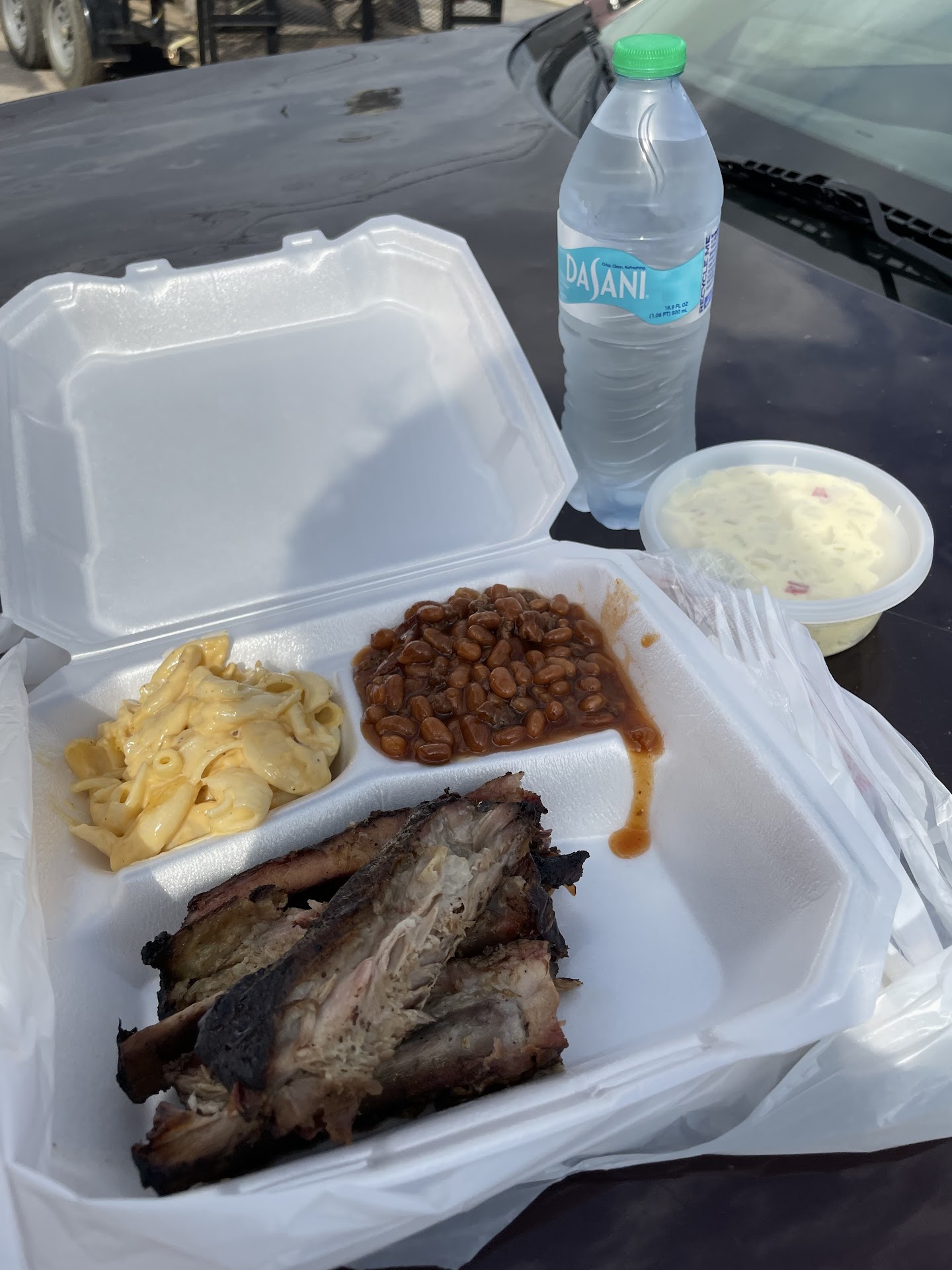 I ate here on Feb. 6, 2025, at 1:30 pm. They have an extensive menu, but I saw they had some food under a glass case on the counter. It was ribs, brown beans, and macaroni so I went with that and also got some potato salad and a bottle of water. The ribs, I think, had been sitting there a while (probably since lunch). They were a little greasy a little bit dry but they were still good. The baked beans were good, a little sweet like they had a touch of molasses. They also had a little ground hamburger in them, which was interesting and it wasn’t bad. The macaroni was good, thick, very cheesy and there was something unique about the taste. I’m not certain what that was, but it was good. I guess they maybe had a slight onion taste. The potato salad was good. I thought at first it may have come from a supermarket, but there was something added to it. That made it particularly good for mustard potato salad. I’ll be going back. You can only take out here. You can’t dine in. The prices were reasonable. I think it’s a good place to stop traveling between Louisiana and Pine Bluff, or from wherever. The staff was friendly and the restaurant was clean and...