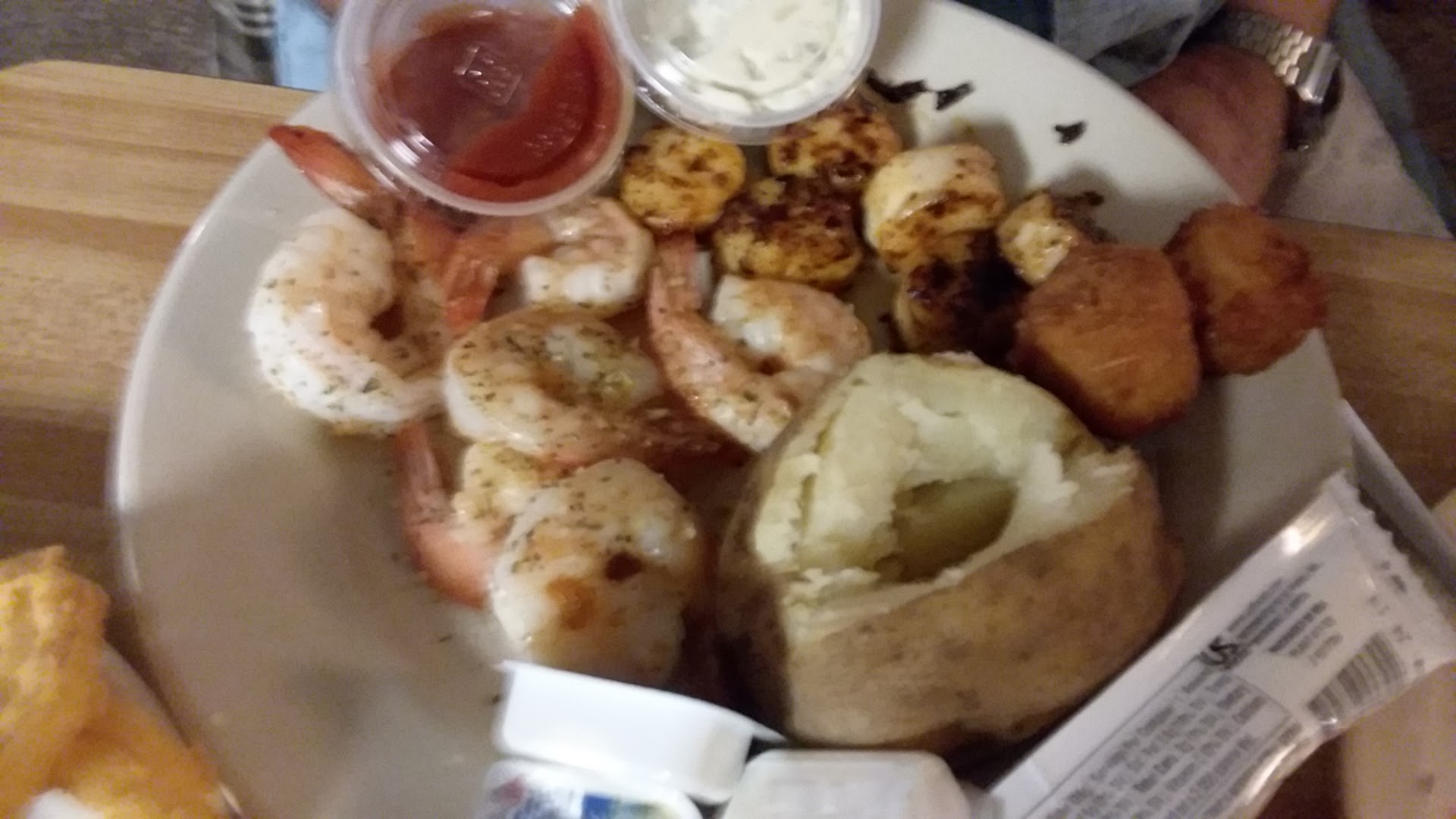 Pros: they aren't joking when they say the fried shrimp are HUGE!! our server, Chloe, was awesome
