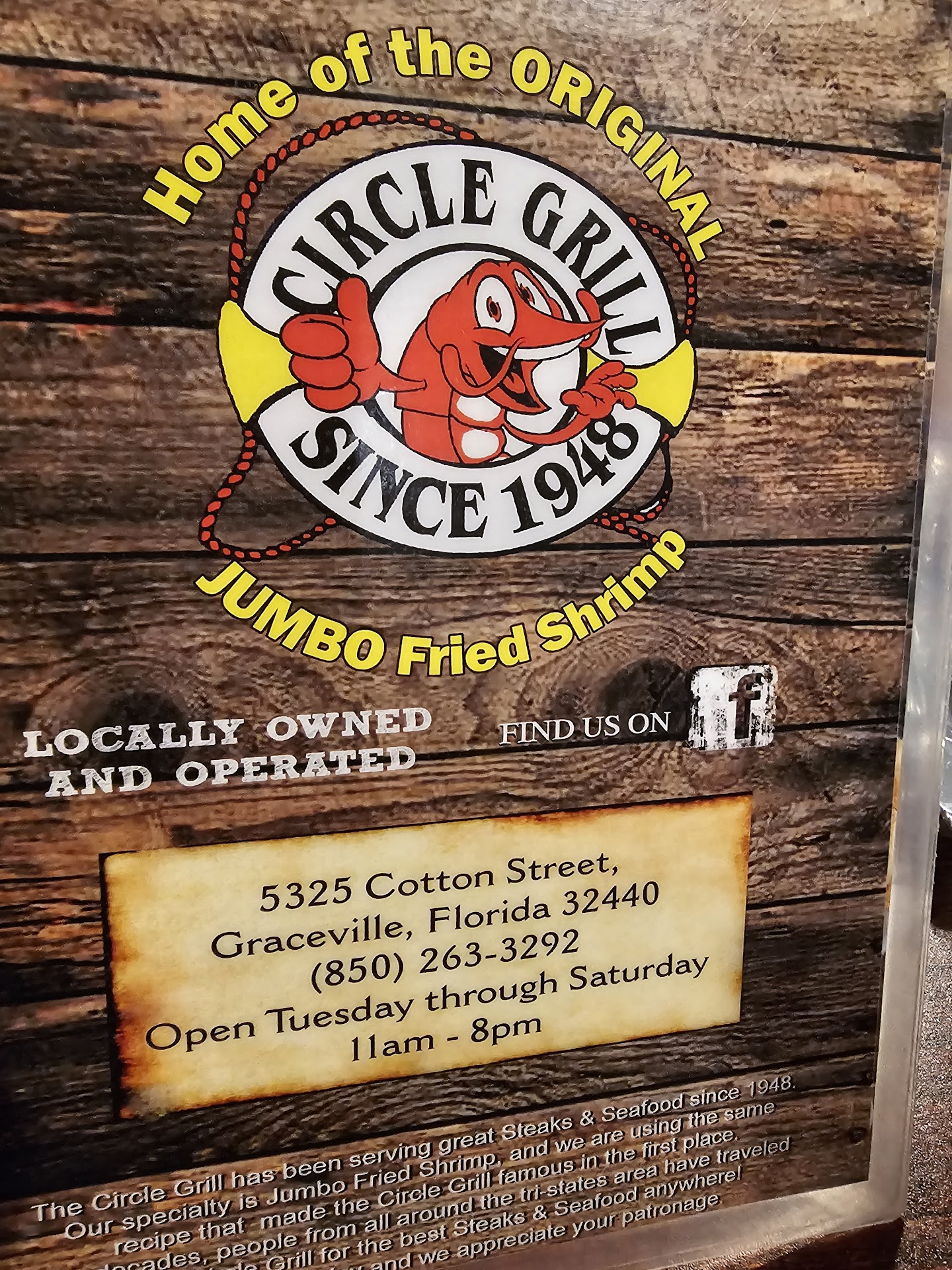 Read moreTo be in a small noncoastal town......this place is simply AMAZING!!!! Move over Gradys is all I can say.....old new champ in town!! Ive lived in Apalachicola and eaten at every place from Panacea to St. Joe.....the Circle Grill can hang with any of them!!! The flavor the portion size and an uncomplicated simply to look at perfect menu set up and the unmatched service makes this place beyond 5 stars!!! You are doing yourself a disservice if your in or coming through this town and do not stop here. The price is very even and comparable to other seafood places of its kind as well......but with food an service like this place offers is worth its weight in gold. Dont get to eat out hardly anymore with these tough times we all face but when I do get to.......my time and money will be spent at the Circle Grill!!! Thankful for yall!!! Go see...
