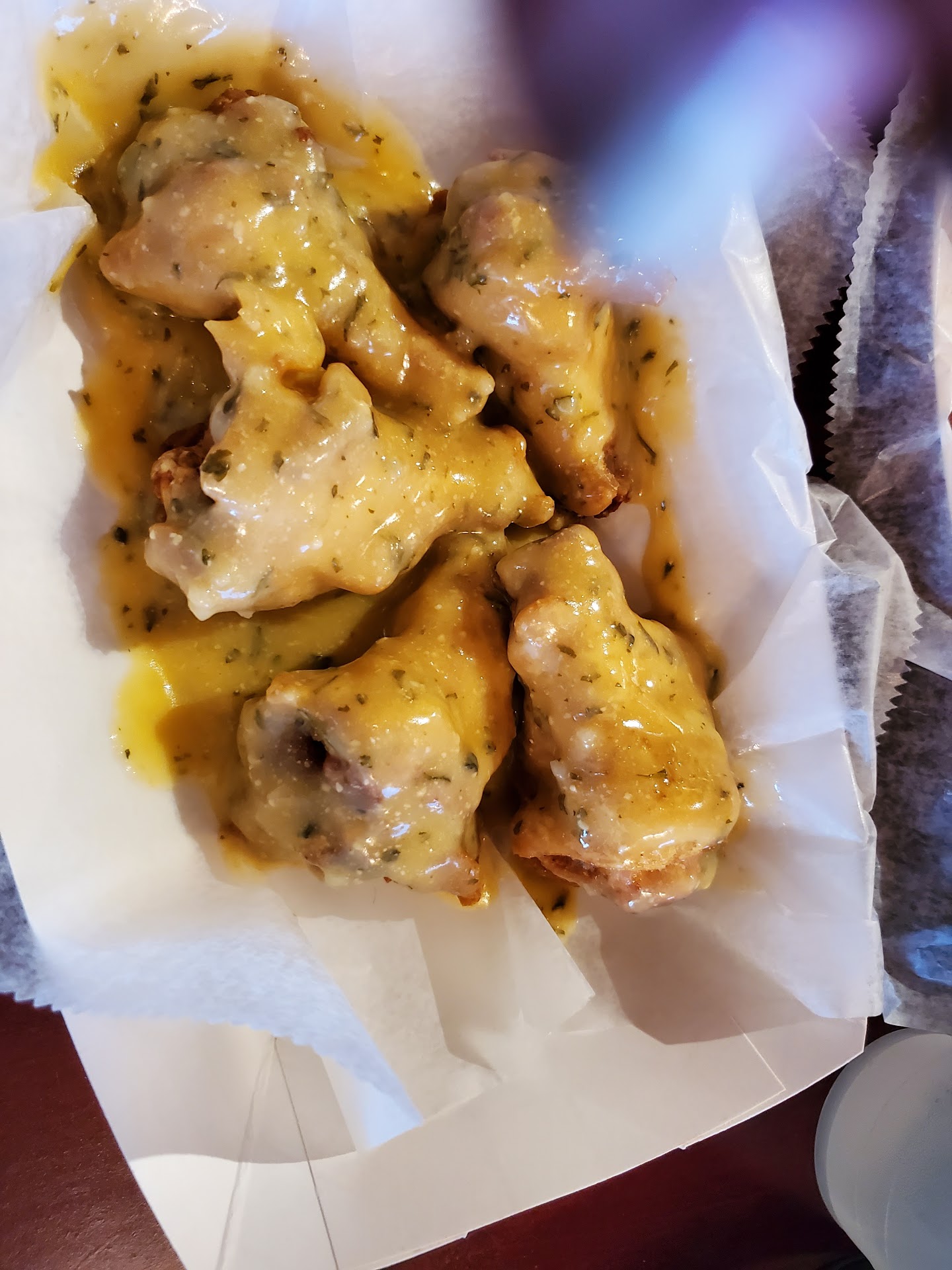 Our favorites ❤ ended up being the Raspberry #1. Sweet Thai #2, followed by the Blueberry, and then the Garlic. Which surprised us, because we thought Garlic would be our favorite. Our waitress, and another waitress were so helpful in helping us decide which ones to get. They were the ones that actually suggested the Raspberry and Blueberry wings...we didn't think we would like something like that. They were delicious, especially the Raspberry. We would come back here JUST for those Raspberry wings! And they are huge!