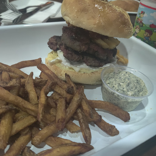Read moreMade reservations for dining room - placed in the bar area, couldn't even hear each other due to how loud it was. When leaving we could see the dining room was basically empty, so I'm not sure why they changed it and didn't tell us where we were sitting just lead to a table and told our server would be by soon. My husband ordered the dry aged ribeye - he received a standard strip steak. That's not even on the menu. He informed the staff of the issue, told them he would keep it for now- as at this point we were both getting headaches due to the noise level. The items were still charged full price on our receipt. I ordered the filet mignon medium rare - dinner arrived and it was very very rare with a cool center - not medium rare. And both of our side vegetables were undercooked. Maybe the cook needs to work on some of the basics. Also ordered the peaches & cream dessert - was not cooked well, the peach was crunchy and really had minimal to no sweetness. Currently don't plan on returning - as that is a hefty price tag on many dinner entree items but perhaps the sandwiches would be ideal as those are...