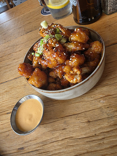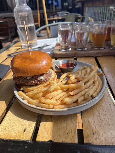 Read moreMy husband and I frequent this establishment on occasion and both service and food quality is inconsistent. It never seems like they are very busy, however there is a lot of seating so they might not have the staff to serve all of those tables. They are a brewery with a large selection of their own beer. We love the Punch You in the Eye PA but honestly, all of their IPAs are very good. My husband has tried the short rib panini twice; once it had barely any meat and the second time he said it was bland. I once ordered the fish fry and my cod had bones in it. They offer a taco trio which I ordered to go once; I got two fish tacos that had large filets in them but the slaw was dry and a Korean taco which was amazing. On the side, I received a to go container with melted cheese, sour cream, rice, green salsa, and two large slabs of..steak? It was very strange. If these were condiments, it would have made more sense to put them in 2 or 4 ounce containers with lids. Iâm still not sure about the side of steak. They gave me another container of rice and beans in, which I think was the side? The best meal we had was brunch, which they serve on Saturday and Sunday. My husband got a delicious breakfast sandwich with bacon. I ordered a Caesar with a side of potato pancakes; Caesar salad was good but the potato pancakes were phenomenal! The price is a little high for how inconsistent their food is but the location is perfect for your way North or South on highway 43. We also like their outdoor seating despite it being so close to the highway; itâs also hot dog friendly. I recommend giving it a try! or two or three until they get it...