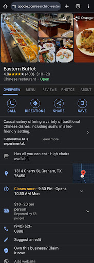 OK... So this is a difficult review for me to do. On the one hand, I like the fact I never have to wait for a table... but if folks actually read my review, I may have to start making a reservation!! 1.) Quality... Let's start with the quality. In most buffets, the food quality, the cuts of meat and vegetables, are at best mediocre. Not here!! The food quality in every single respect is absolutely top shelf!! Excellent cuts of meat, fresh and perfectly crisp vegetables, the presentation and sauces are impeccable, and the flavor profiles better than most specialty restaurants! 2.) Value... mind boggling!! Most people would find it challenging to produce meals at home for the price of the buffet!! Given the quality, it would still be a bargain if it were twice as expensive, but recognizing their location, the restaurant has hit the perfect price point and is a great value for the money!! 3.) Authenticity... When you're talking about a restaurant featuring international cuisine, you want to know how legit the food is. I've lived and worked in China, and this could be in Southern China and wouldn't be out of place. The flavor profiles are excellent and that reliably. 4.) Overall Experience... I drive 30 miles to go to this restaurant regularly, and that despite there being a Chinese restaurant not 400 yards from my house. It's that good. And you'd never know, nor expect it in Graham, Texas. A hidden gem, indeed a treasure of a...