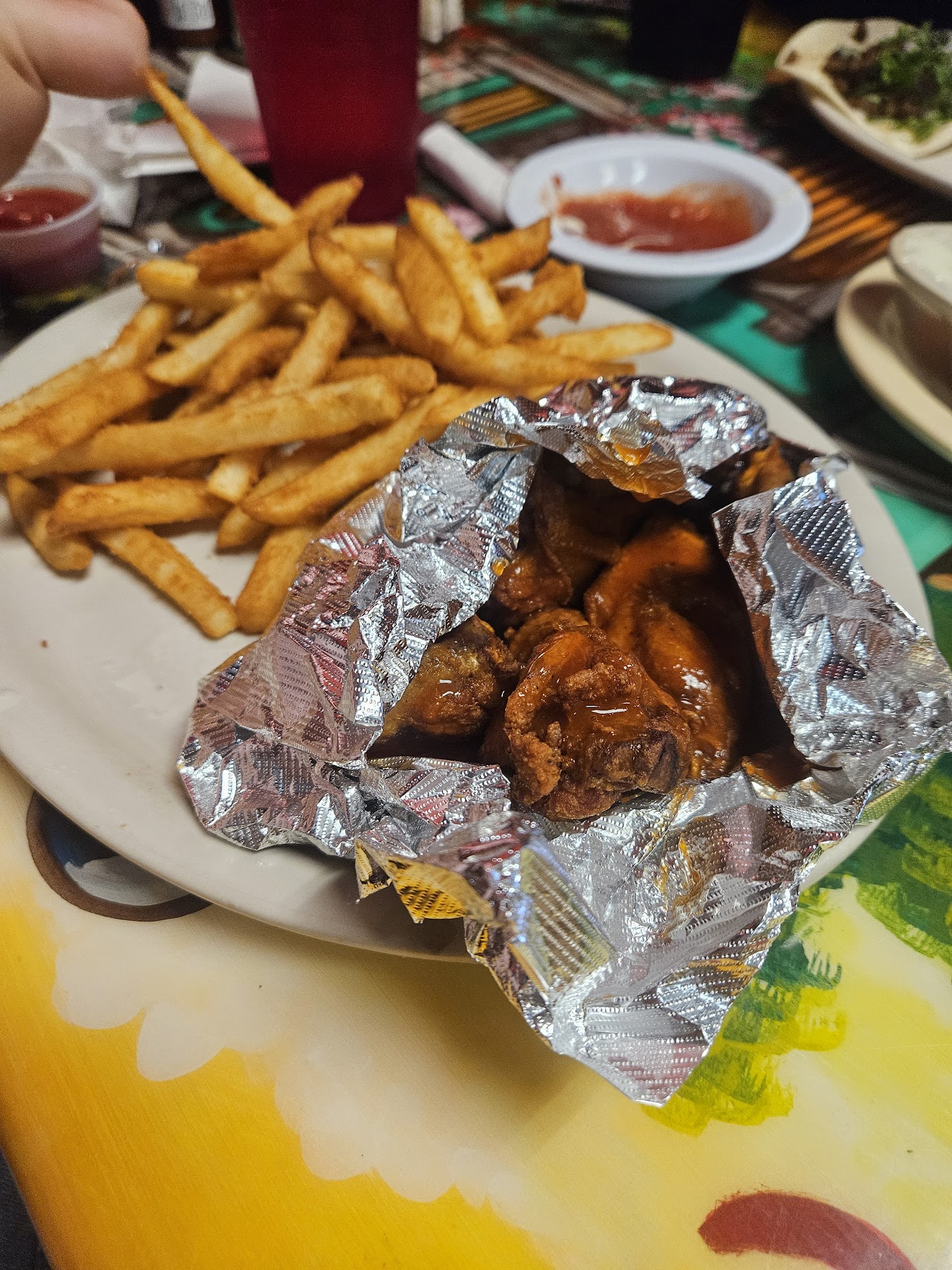 I liked the menu options here. Food was close to authentic but Graham isn't the best for finding ingredients. I arrived around 430pm on a weekday. The parking lot was a bit of a problem because the Food Lion was receiving from an 18 wheeler in the front parking lot. This screwed up traffic and that got worse closer to 5pm as the traffic light backs up cars. So trying to park became a chore. We were seated right away and there were 4 other tables. Service started off fine, but over the next hour, about 10 other tables were sat. We ordered and our food arrived in good time brought out by a runner. There were 3 runners wearing red and one server wearing purple. To start, the runners were hanging out at the front of the dining room. By the time we left, they were everywhere, but could only do so much. The only server was busy taking orders. That's all she could do. She wrote all the orders on the typical green guest check pads. I didn't hear anything being called out in the kitchen. So I assumed that there was a POS system somewhere that orders were being rung into. Our server never revisited us after our order was placed. There were no refills or any offer of boxes until we waited for the check for 38 minutes after we finished eating. The server came over and asked if there was a problem. I asked for the check. She told me that I was supposed to go to the front register for the check. We went up she met us there, called out our order from the guest check pad and rung up stuff. I never saw a check. Before walking out I went to the east side of the restaurant to see the bar. I found 2 people in there that appeared to be trying to figure out either how to get service or serve themselves. There did appear to be a POS system at the bar. Alcohol service picked up as we were there and most of it was brought out by the runners without the server present. Every restaurant has days were someone doesn't show up for their shift. If that's what happened here, it doesn't explain whatever the system is associated with service here. There were so many food and alcohol cost issues going on here. I'm talking about theft and miscommunication between runners and the server. These runners could easily pick up tables but that didn't seem to be allowed. I'm shocked. This place looks like it's been here for a while. With this type of service it won't be able to survive. Our food was ok. Wings were tasty. Tacos are served basically al la cart and not a feature. So just tacos on a plate without sauce or rice or something. My enchiladas were ok. The beans that came with them were great. The place has some great looking food and potential but there is so little management control to the point where I'd be worried so much product is walking out the back door, the restaurant won't be able...