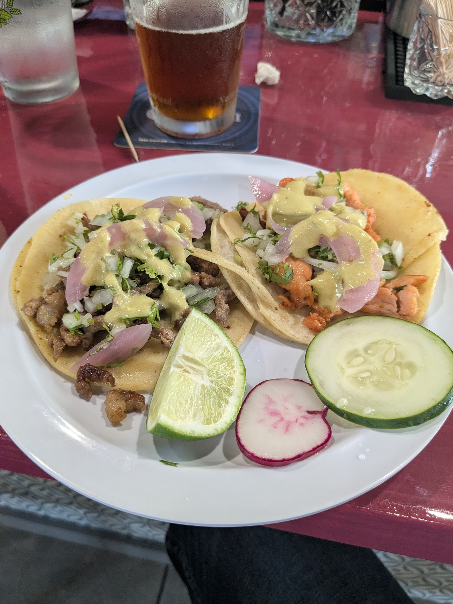 Ā Ā Ā Read more5 stars across the board. We'd heard good things about this new place and stopped by to check it out. As soon as we walked in the service and attention were top notch, but not over-the-top. We were warmly greeted and seated promptly. Our server checked with us periodically, but again not too often. The food was excellent and not what you find in most area Mexican places. And contrary to another reviewer, they do bring chips and salsa to you for a starter. Beer-wise they only have Red Oak and Mich Ultra on tap but have a variety of bottles. The bar is fully appointed and our drinks, both Monday specials, were very tasty. They even brought us complimentary samples of their strawberries and cream dessert - decadent! They've added outdoor seating to the building so when this heat lets up it will be super nice to sit outside. Someone also said their A/C wasn't up to par, but it was nice and cool in there during our visit. ...