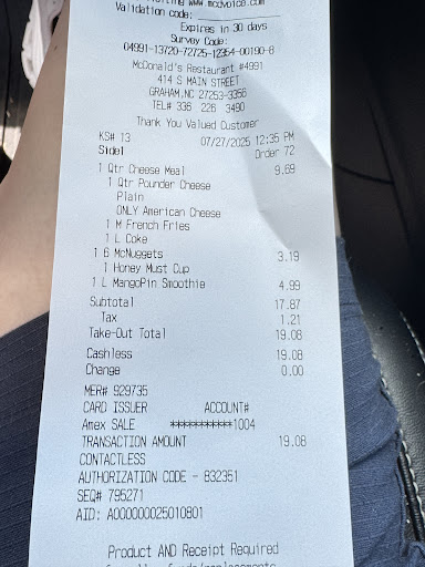 Read moreWorst service I have ever received at a McDonald's. Went through the drive through and ordered a small coffee. When I got to the first window to pay, I paid the cashier, but instead of giving me a receipt, she just closed the window in my face. I took this to mean I should go ahead and pull forward to get my coffee at the 2nd window. Except when I arrived at the 2nd window, they had no record of my order, and proceeded to ask if I had a receipt. I told them that the girl didn't give me one, and then recited to them exactly what I had given the cashier (how many quarters, dimes, nickels and pennies etc..) to pay for the coffee. I waited for about 5mins. at the window, and then decided to go inside and ask for a manager. Instead of giving me the coffee I PAID for, the manager then proceeded to argue with me over a $1 cup of coffee, in front of other customers inside the restaurant. I asked the manager exactly how hard was it for their cashiers to remember a person who was literally at their window less than 5mins. ago, and how I was able to recite the exact money I used to pay for the coffee, and why instead of saying "Thank You" or handing me a receipt, their cashier thought it was appropriate to take my money and close the window in my face? Needless to say, I will not be visiting this particular McD's again. I can't believe the lack of customer service of this crew, the gall of the sh*tty manager to accuse me of lying about a $1 cup of coffee, and the fact that I had to wait almost 30mins. to get the coffee, but only after repeatedly trying to prove that I had, in fact, paid for the item. While normally I wouldn't sweat a $1 loss, being accused of being a liar in front of a restaurant full of people motivated me to get what I paid for, even if it meant having to wait for them to count the register of the cashier who conveniently didn't "remember" seeing me at her window just moments before. WORST...