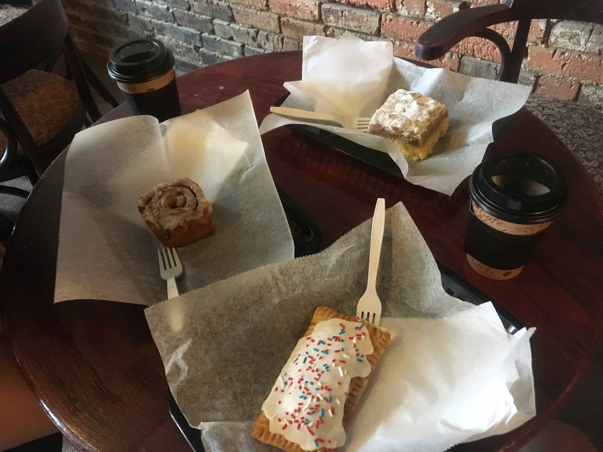 Pictured below are the foods that we ate with our coffee: the cinnamon roll, pop tart, and...