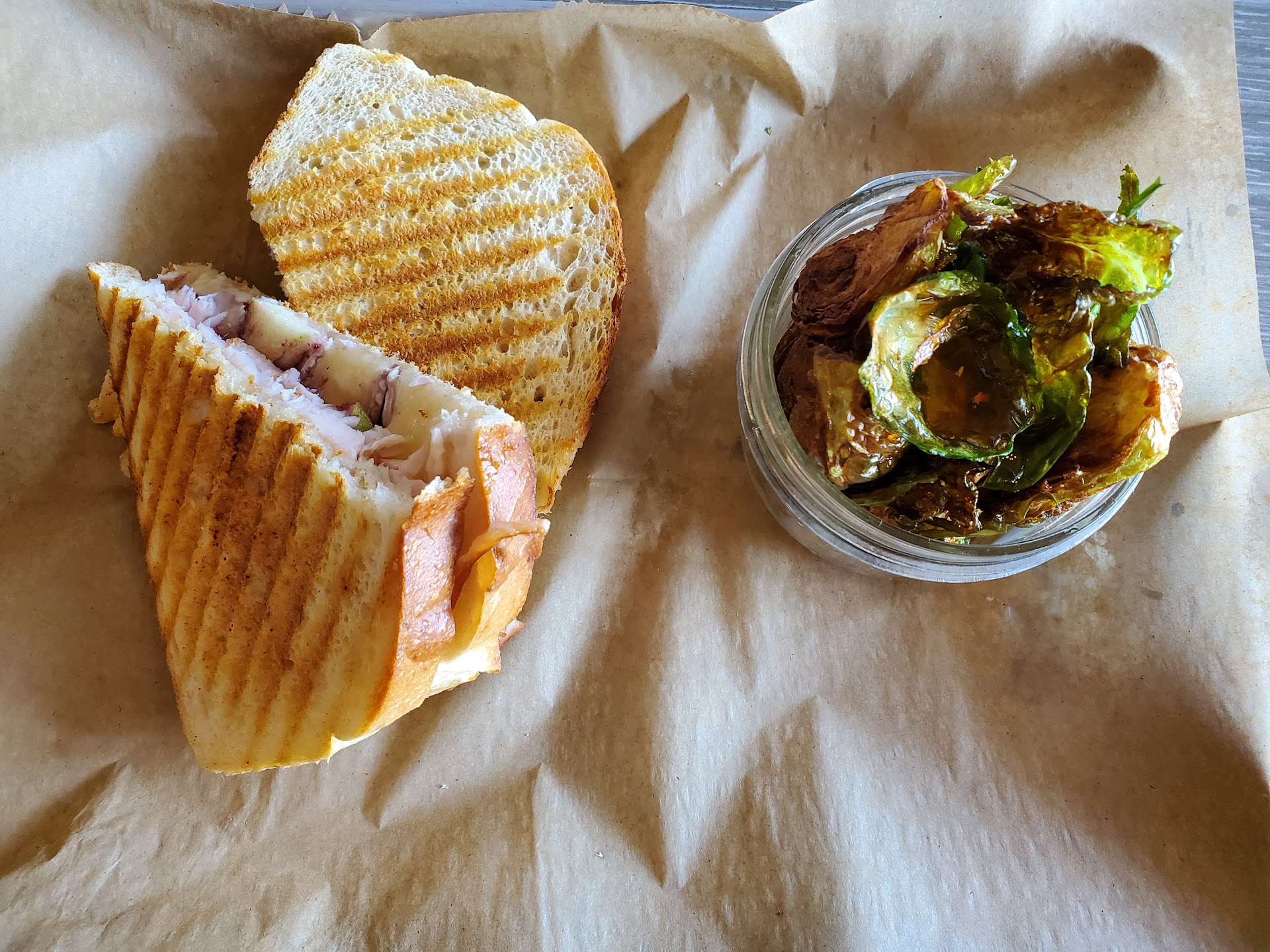 Turkey brie panini tastes like brie with bread. Extremely small amount of turkey, this could use a few more layers of meat. The green apple is a nice touch and seemed fresh and crisp. As for the blackberry jalapeno jam, couldn't taste it. I was hoping for a bit of spiciness from the jalapeno, but was disappointed with that.