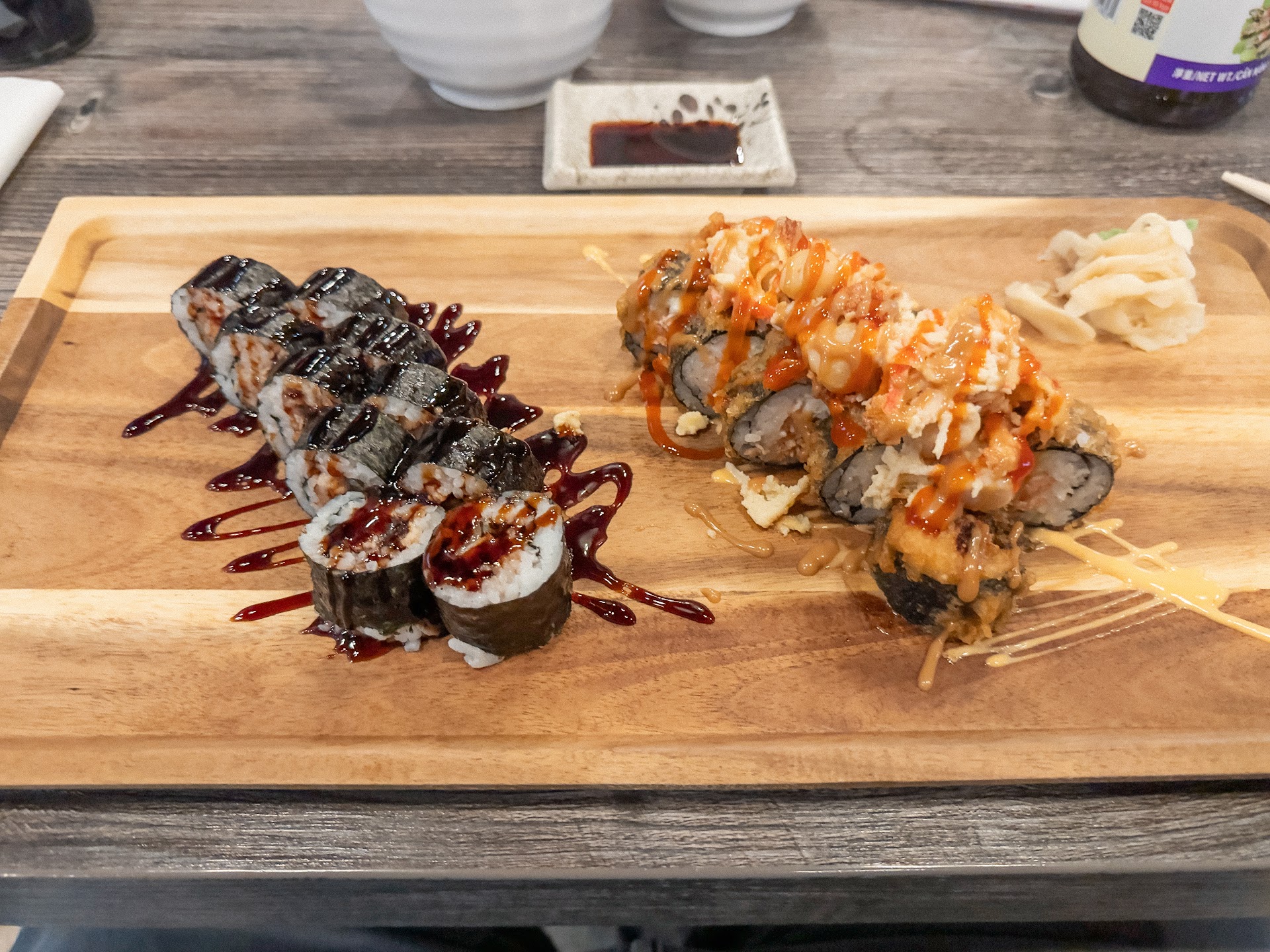 The sushi was horrible. So small, about the size of a nickel for about eight pieces at an average of $15 a roll. To top it off the fish was fishy. It was not fresh at all. I would expect being close to the weekend it would be fresh, but I would have rather had the sushi from H-E-B in the same parking lot. They need to get rid of the sushi and focus on the pho.
