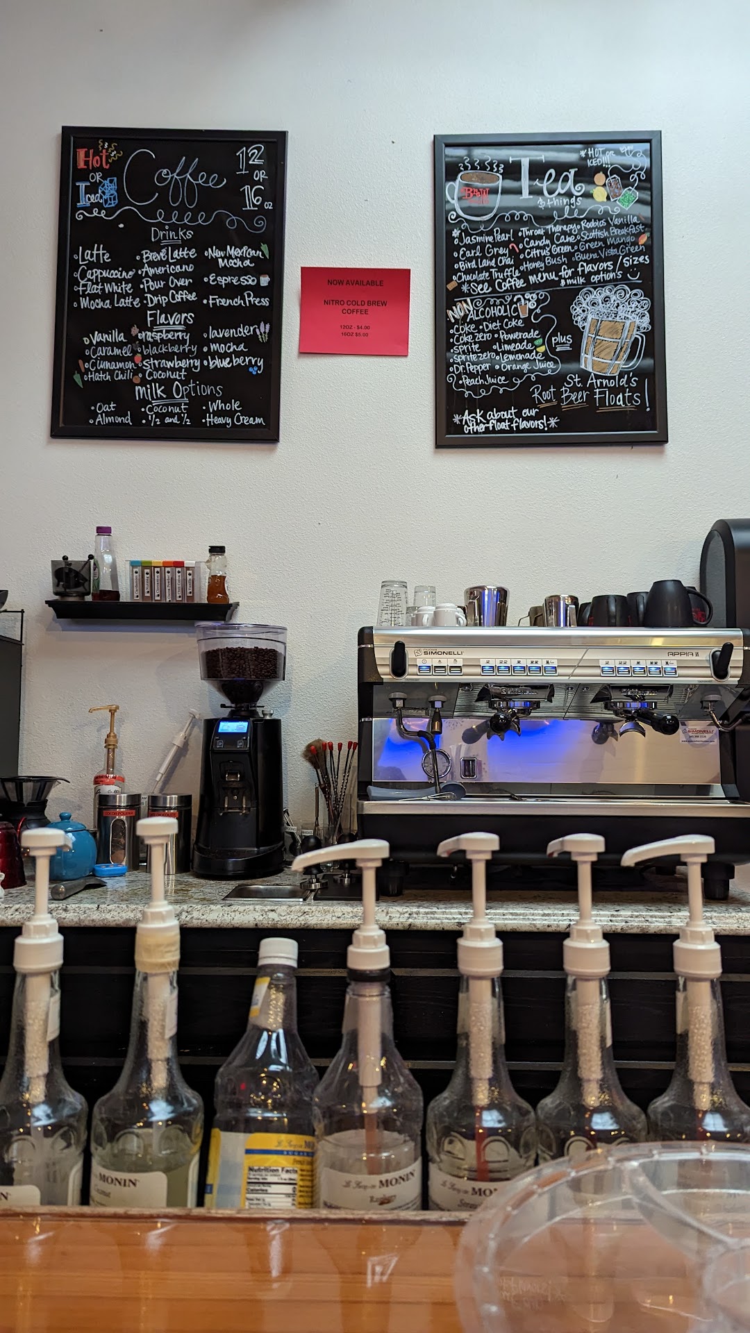 This is not a restaurant where you are seated and served, but rather an authentic and fun drinkery where you can meander outside, sit at the bar and watch the game or simply hang out in a cozy place and sip on your favorite coffee drink. They have a succinct menu that pairs well will their craft beers as well as their non-alcoholic root beer (my favorite).