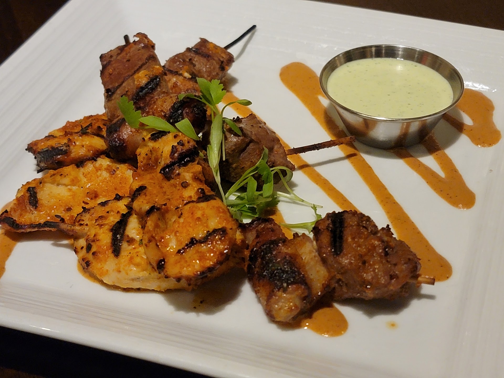 Read moreWe ate here on April 30, 2021 with friends. While the meal was enjoyable it could've and should've been so much more. The upstairs dining room is small and intimate, so when not one but two different waitresses dropped trays of food and dishes clanging to the floor within a few feet of us, it was jarring and disruptive to say the least. Tyler, our waiter, was friendly if not focused and attentive. Our friends ordered three "small plates" and one side to share as their dinner. They ordered the Texas Trilogy and two of the pan seared ahi tuna, along with an order of sauteed mushrooms. Tyler brought out the Texas Trilogy and one of the pan seared ahi. Our friends had to ask for the second ahi and the mushrooms. The mushrooms never came.