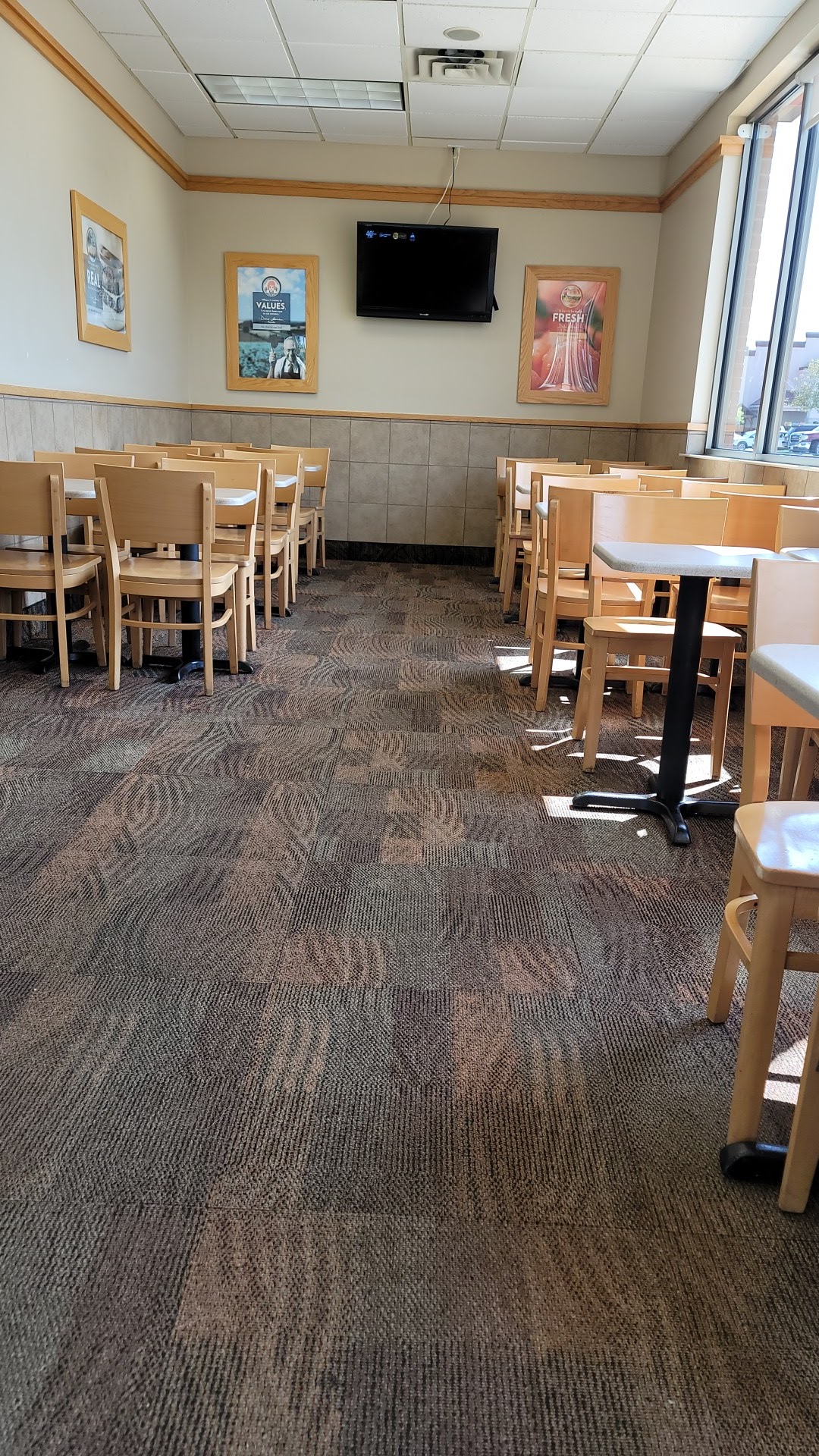 Bathroom inside. Good parking. Handicap parking. All the essentials from a mixed fast food drive through and dine in joint.