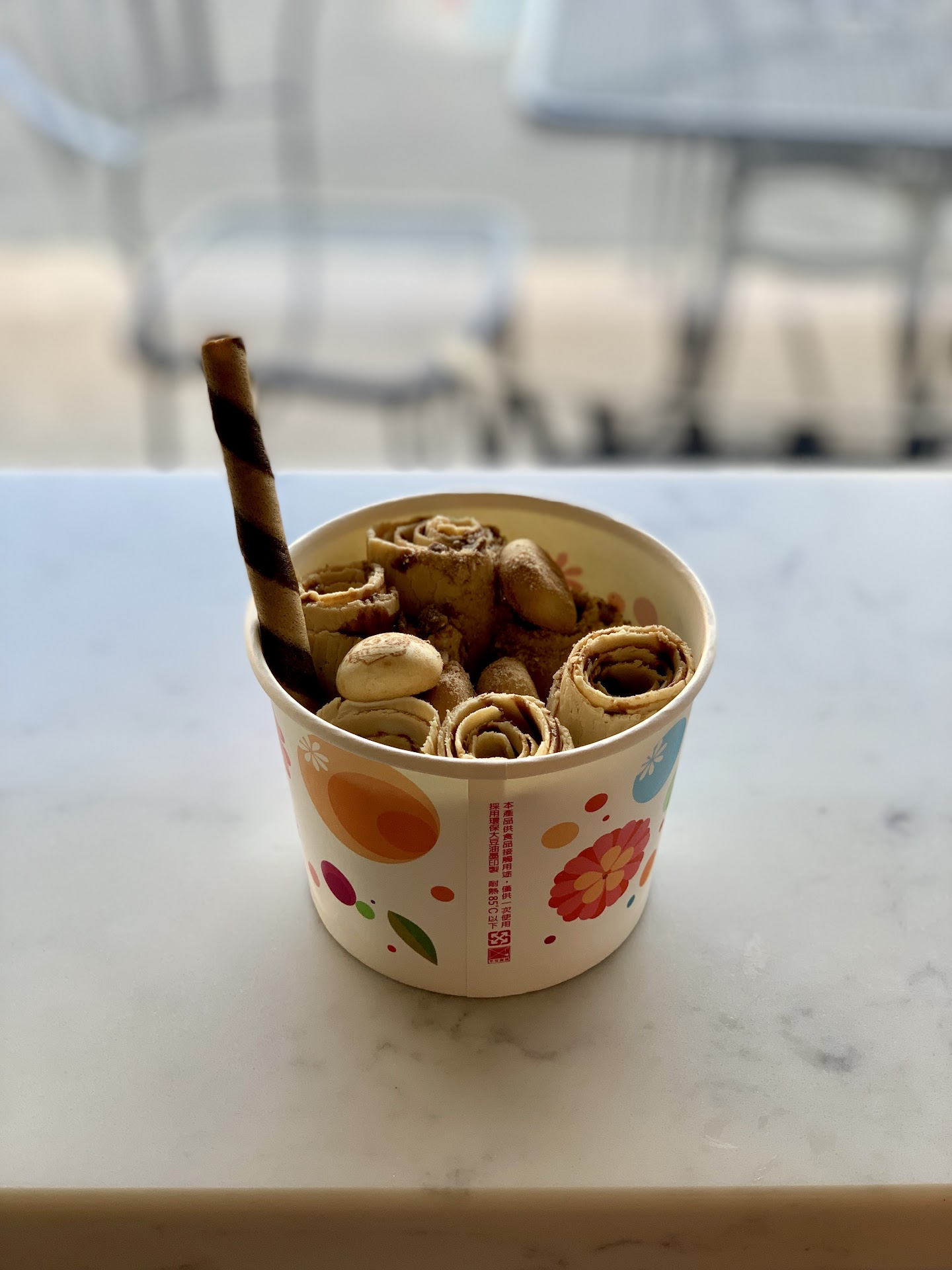 Icy Rolls is tucked away in the corner of a small plaza. They have a nicely shaded outdoor seating area you’ll walk by as you enter. This is the second place I’ve gone to that serves Thai iced rolls and I am a big fan of the first one, Absolute Zero in Northampton, MA.