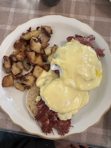 Never been there until today after an event in nearby Granby. So glad we stopped by for a late breakfast. We both had egg benedict dishes. My wife had the Irish version with real cut up corned beef. The eggs were perfectly poached. My traditional benedict had a big slice of ham topped with a delicious sauce. The home fried potatoes on our plate were good enough to make a meal. Even the coffee was excellent according to my wife. Service was also excellent. Very friendly staff who took pride in their service. Overall, an excellent end enjoyable dining experience. When near Granby again,...