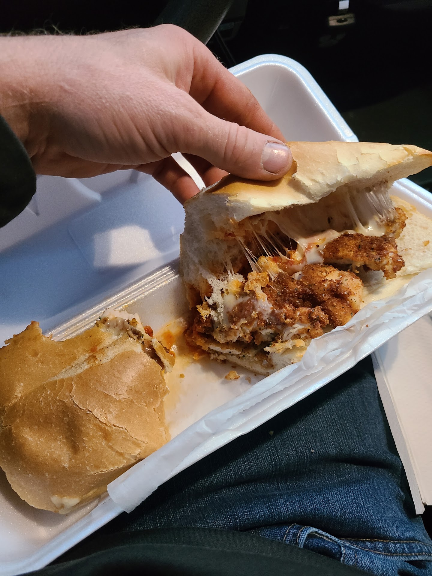 We ordered a Philly Cheese steak grinder on one occasion. The portions were good, flavors balanced, and seasoning was good too, but the beef had not sat on the flat top long enough to brown. Without a maillard reaction occuring on the shaved beef, you are missing added crispy texture, and additional flavor compounds that come from proper browning.
