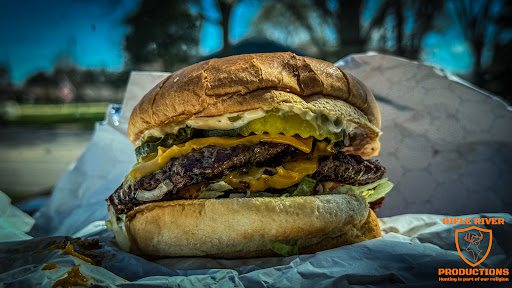Shout out to Brad for being professional, kind, and accommodating. We got the Olive Burger with fried chicken Patty as a substitute, and the fireburger added a fried egg. We split each.