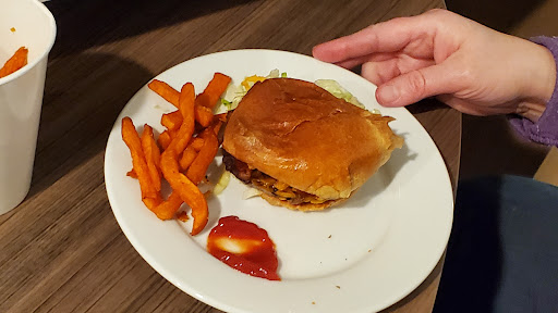 The fillings/toppings were flavorful and delicious (a 4) but the protein was lukewarm which brought the overall food experience down (the fries were warmer). Some people like it that way though, so it's up to your preference.