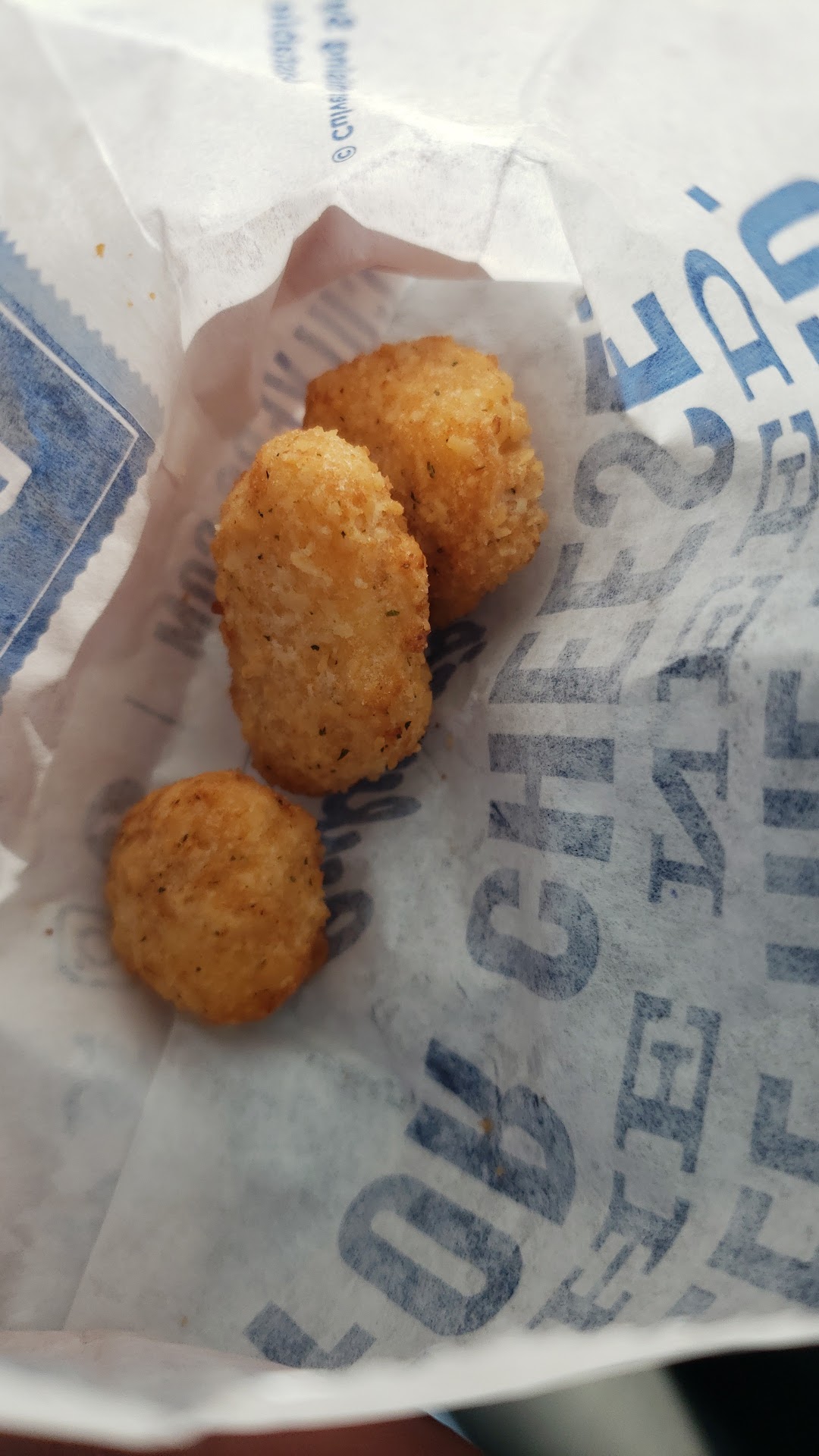 First, the fried cheese curds are awesome. The cheese has more structure than a fried Mozza stick, and the breading sticks to the cheese nicely. Very tasty, and worth hitting the drive-thru just for these.