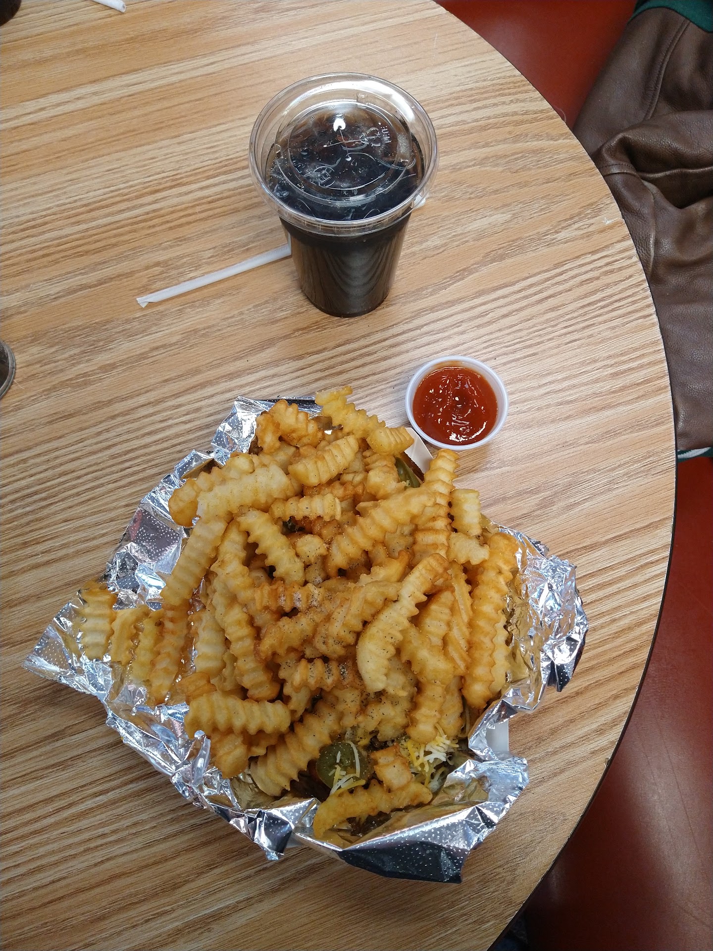 Read moreI saw this place online in a list of the best hotdogs in each state. I tried to come last March but it was closed. I finally got to try them today. I got an underdog. Big meaty frank with chilies cheese and onions. I had them add mustard. This was an outstanding dog second only to a jimmy dog in hazleton pa. It is a very eclectic place with a huge collection of comics and vinyl. A band was playing live music. There was also a chicken and waffle bar and a decorate your own Christmas cookie table. I am glad to have gotten this off my bucket list. Unfortunately since my son just graduated from und I wont likely be returning but I will savor the...