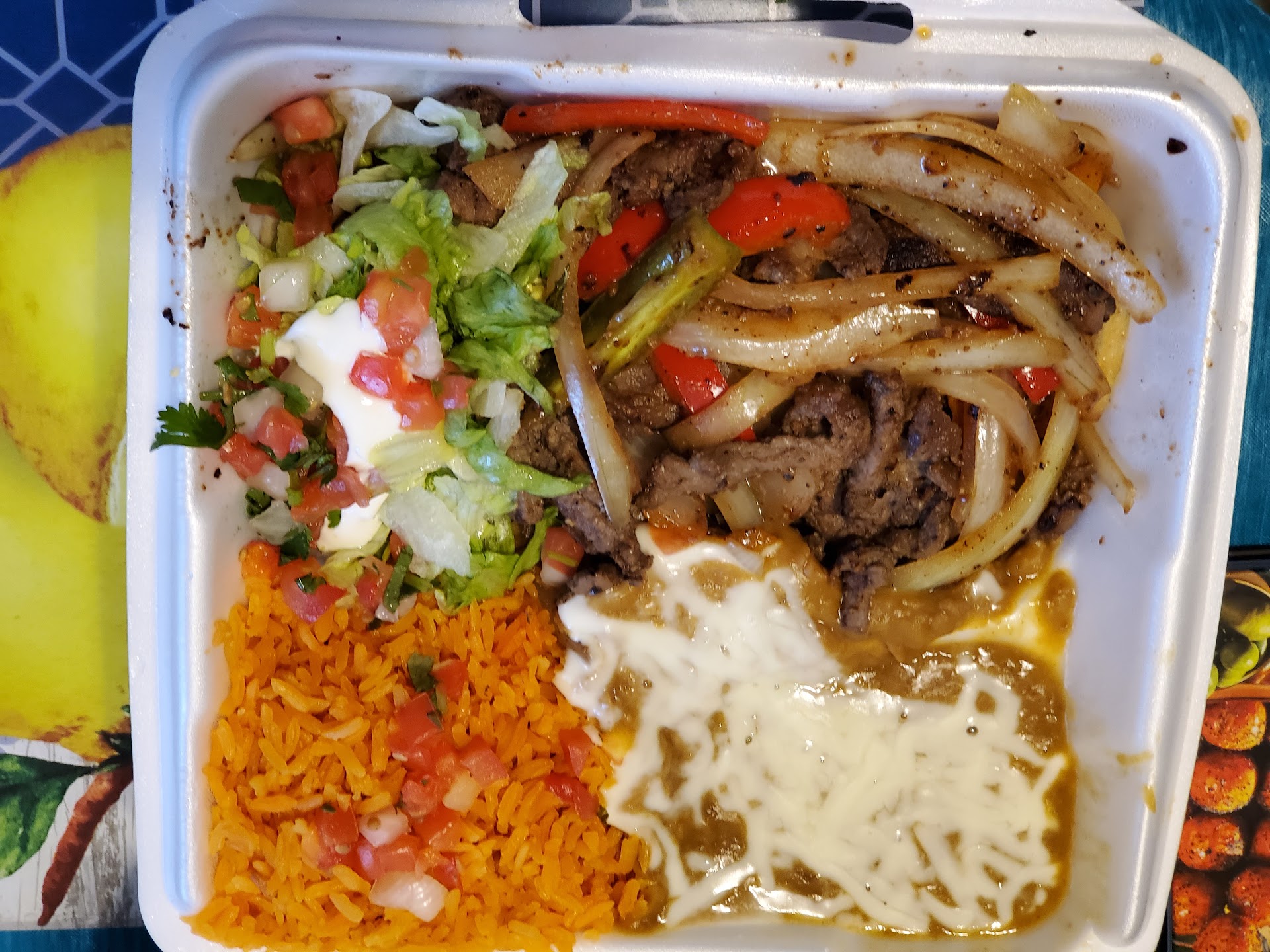 Beans, onions, peppers, lettuce, as well as pico de guyo filled the plates to overflowing with a side of tortillas to boot.