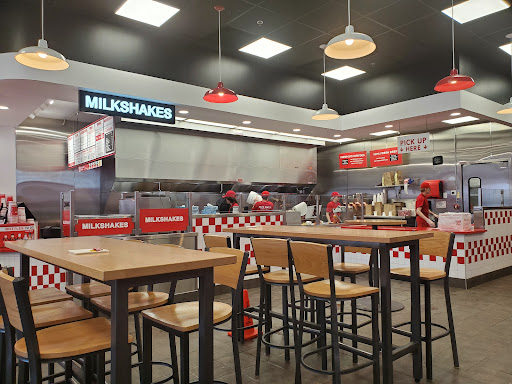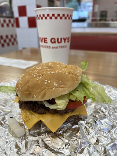 Read moreI've never been disappointed with the food at 5 guys, but today something caused a major wait for my food. When I walked in there was a big crowd of people (not one big group, maybe 6 "groups" some singles, couples and families) waiting for their orders. There were 3 employees that I saw working, one mother and daughter waiting in front of me to order. One employee was making shakes, one grilling burgers, prepping buns, and one making fry's and assembling burgers. It was a good 7 minutes before the mother/daughter ordered, then I ordered. 25 minutes later, my order was ready. In that time more people came in to order, a few door dash pick ups, and I guess some call in orders as some names were called, but nobody was there to pick up those orders. I also did see 2 more employees come from out if the back area, they seemed to be focusing on fry prep. I did not see any employees cleaning tables, but honestly, they didn't have time to stop and do that. Maybe they could put a few more patties on the grill to start cooking , but that could lead to...