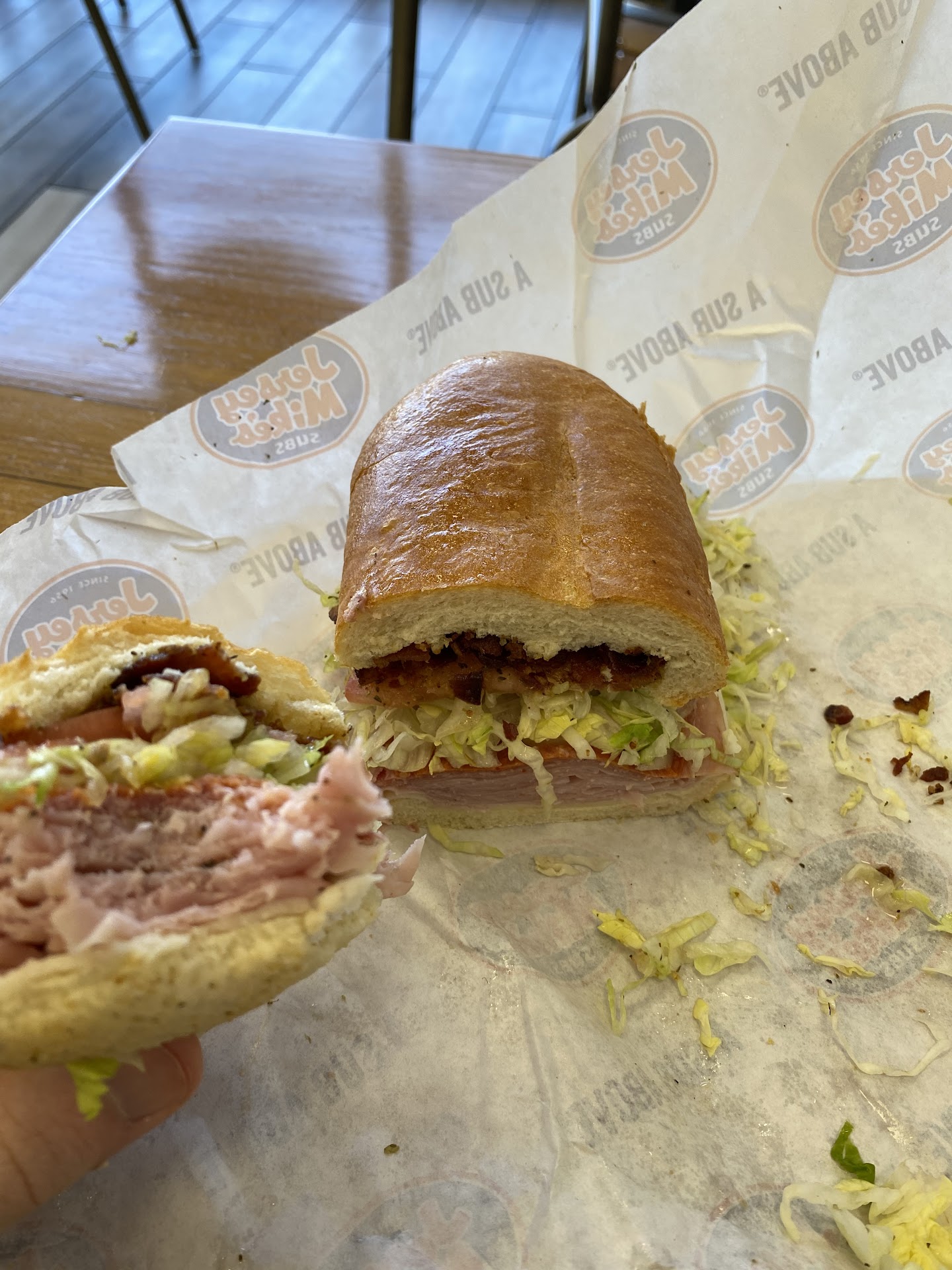 Read moreI've been to this location multiple times and have had 2 different sandwiches, which I'll recommend here. The Club Sub 4/5 Chicken Bacon Ranch 4/5 It's a small interior with some seats and tables. However, I almost always get it to go. The service is touchy sometimes, and that's why it's a 3/5 and not a 4/5. My most recent visit was lovely. All of the employees were polite, and they seemed to be a family. It almost made me want to ask for a job myself. Another employee came in, and they all welcomed her, and it truly seemed like a family. Unfortunately, not all visits are like this. During busy times, especially communication can be hard, and you'll get a crabby worker to deal with. Overall, it's pretty good with some spotty service. If eating for 2, I would suggest finding a sub you'd both like and getting a giant. They average around $17 compared to a normal (which is 1/2 a giant) go for around $~9-10, saving you almost $4. Plenty of food as well....