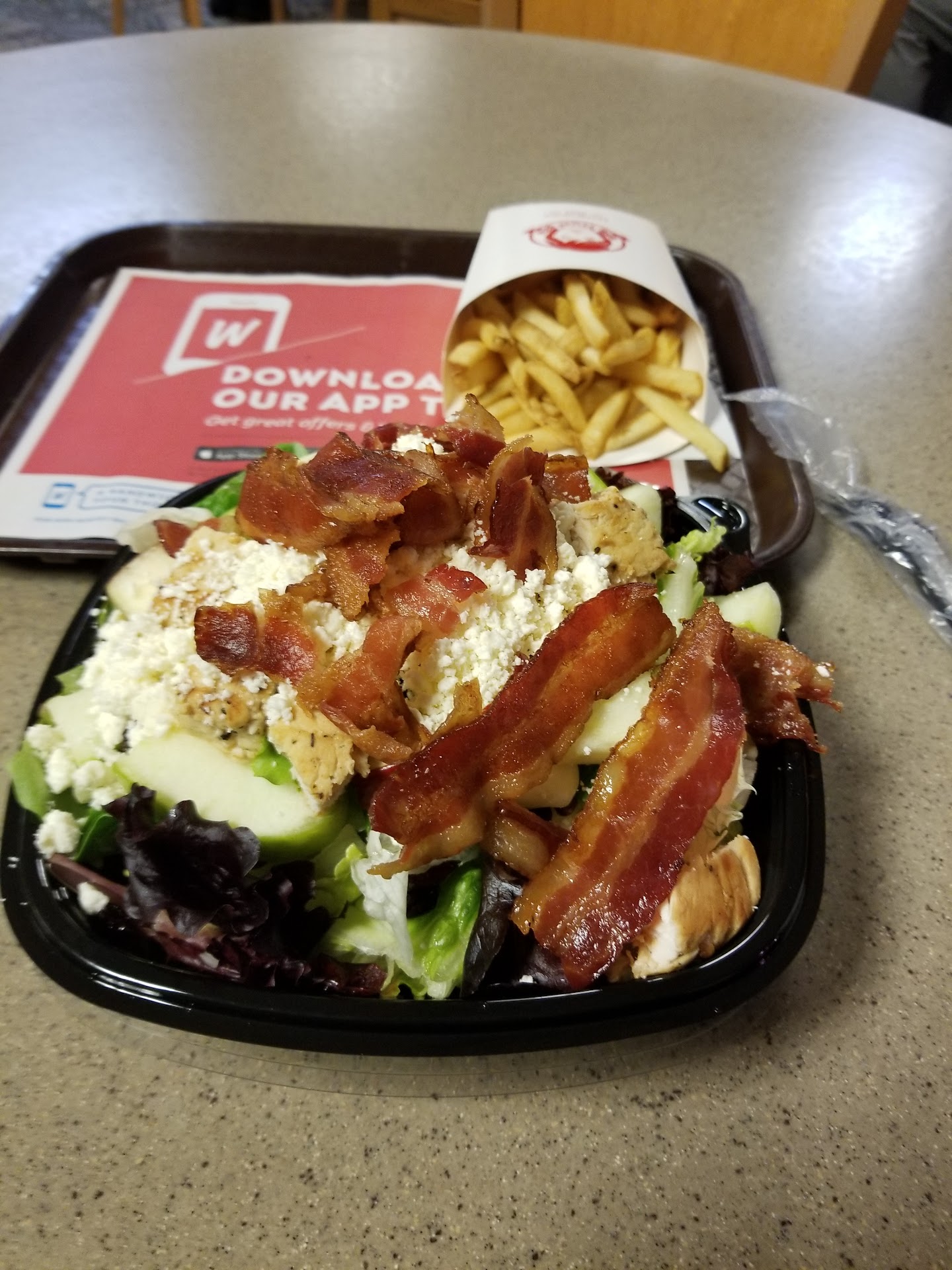 Read moreI don't normally review fast food places, but tonight Wendy's went above and beyond in service recovery. I came in for supper, ordered up their harvest salad. A while after I ordered and paid the front counter member waved me over. They didn't have the harvest salad. He was very apologetic. Offered up any other salad. I was good with the change, all their salads are excellent. I picked the apple one and he offered up a shake for my inconvenience... I'm trying to eat slightly more healthy. He was very insistent that I get something so I went with a small fry. He was happy to get me a large fry and offered to bring my meal out to me. I get the salad and it is HUGE! Tastes great. Couldn't be happier. Thanks for the above and beyond in a "speed over service" type of...