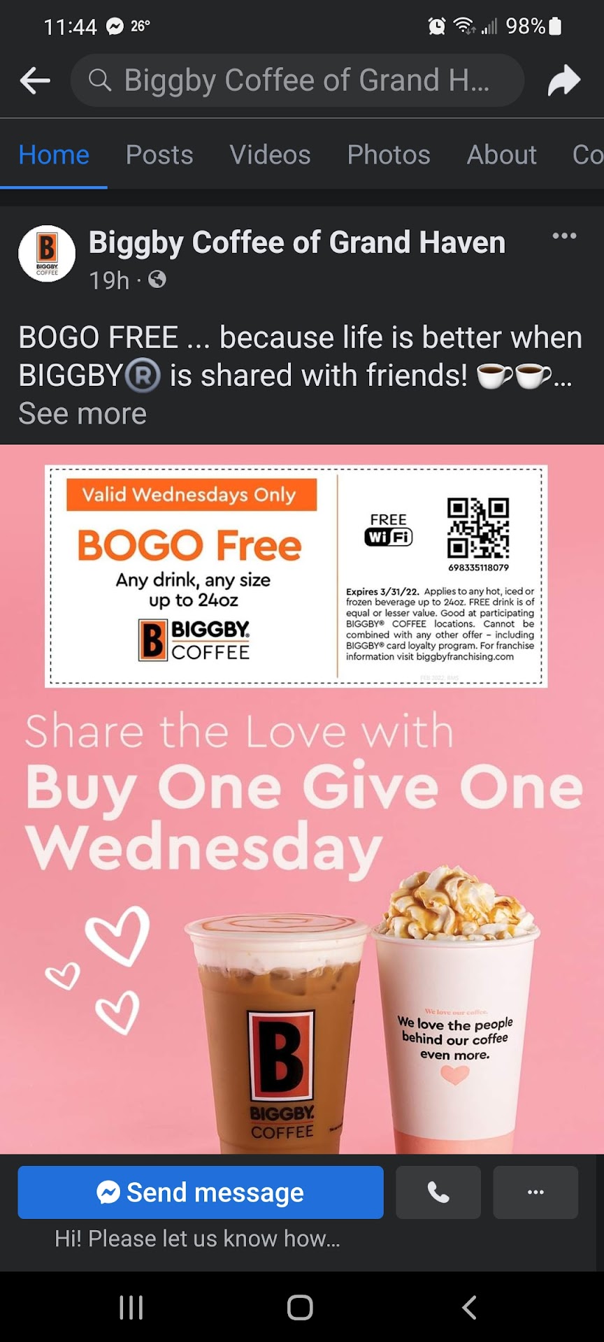 Read moreI stopped at the drive thru this morning and the person in front of me ordered 4 drinks and pulled up. I pulled up to the speaker and I was not acknowledged. I sat there for 8 minutes and heard nothing but I figured they were just busy making the drinks for the person in front of me. I ended up having to leave and when I pulled around no one was in the drive through!!! Meaning they forgot to take my order! I worked at this location with the original owners and I know there is atleast 3 different ways to check if someone is at the speaker in the back. I would just take the extra minute or 2 to stop at the spring...