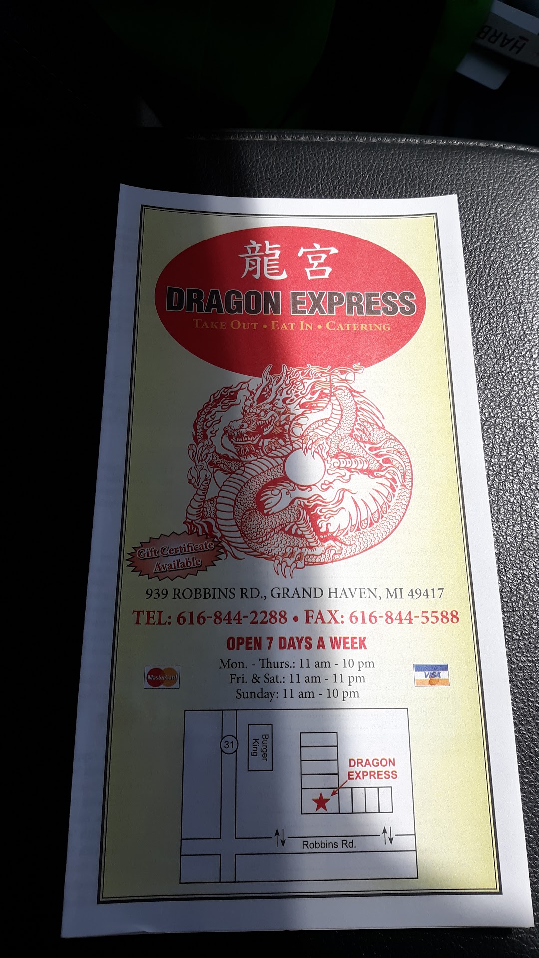 Read moremy sister had hand surgery, so I told her not to worry about supper. I had it handled. So I had the idea to drive from Muskegon to Grand Haven for Chinese food. we went to Dragon Express. they always have good food and fast service. It was about 4:30 we placed a $60. dollar order. I ordered 4 combination platters. I also ordered a BO BO platter which had wings, shrimp, shallots, spring roll and other stuff on the order. The food was all good except what we got in the 13.95 platter. fried way to much , to hard and crunchy to eat. disappointed with that. maybe watch the fryer closer please. Sister was surprised of all the food , and lots of left overs to share with family when...