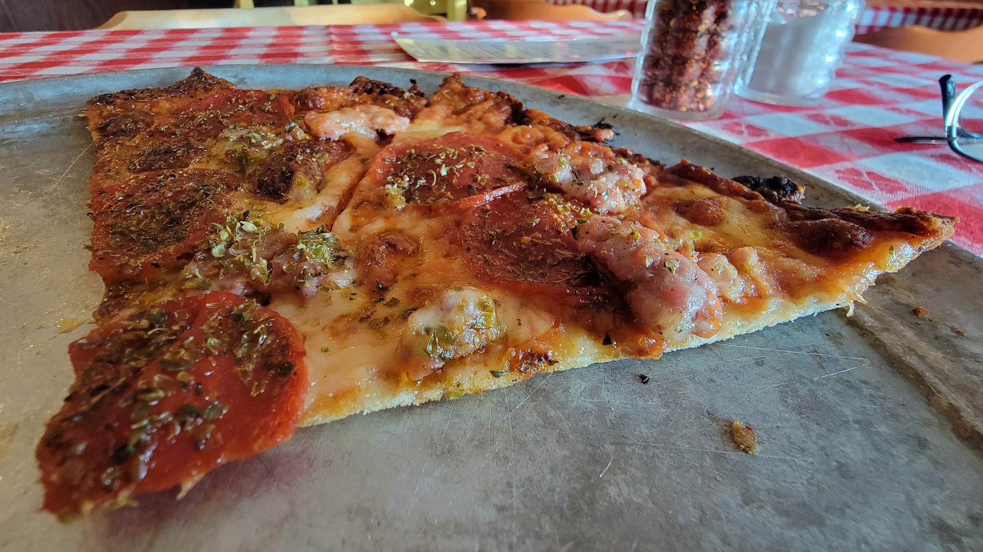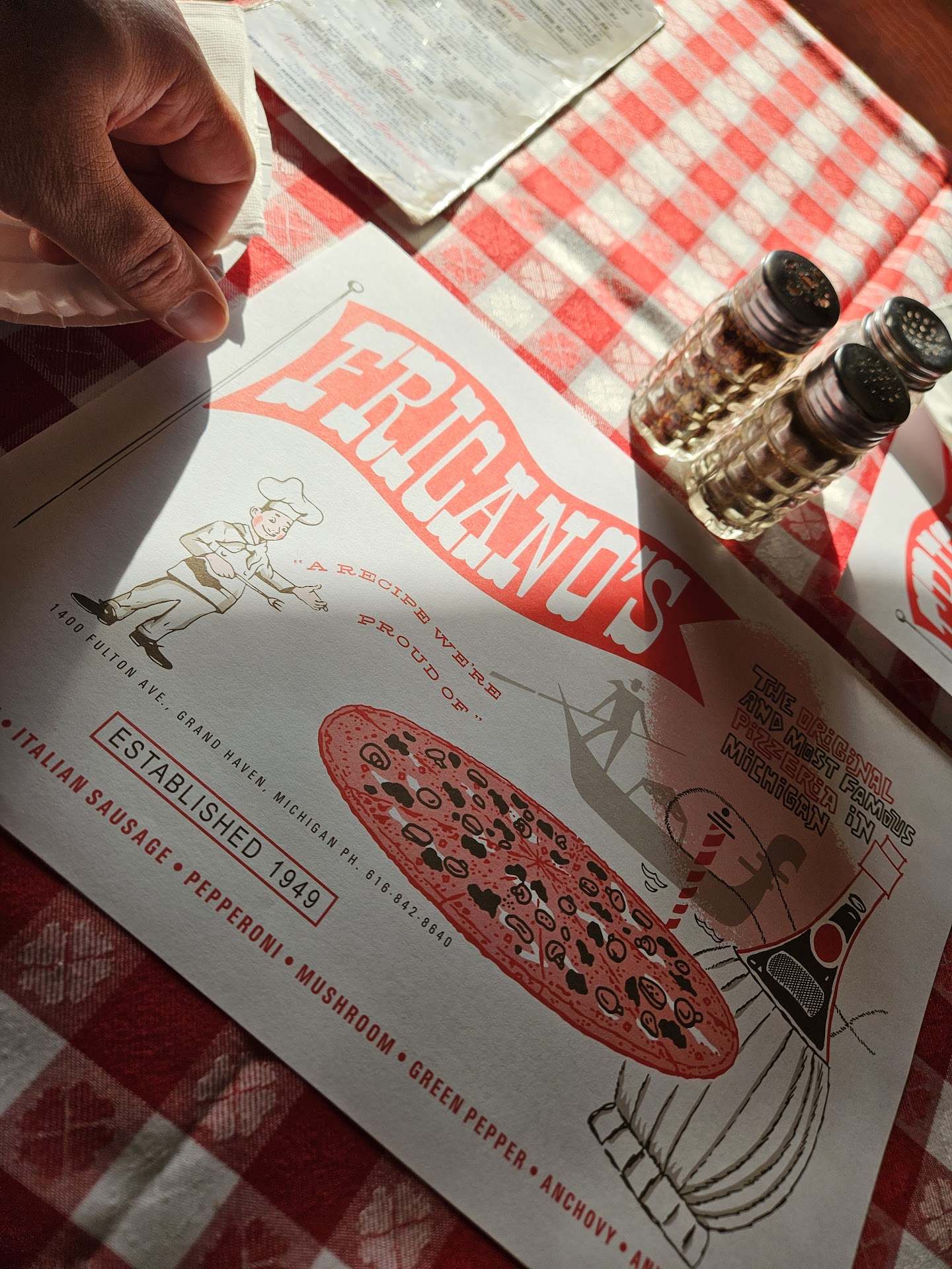 Read moreFricano's is considered to be one of the most famous pizzerias in all of Michigan. Many people feel it is also the best. I can't judge whether that is accurate or not, but Fricano's does make a very good pizza. Fricano's serves up a type of pizza called "Tavern-style," which makes a lot of sense given that "tavern" is in their name. Tavern (or "bar") pizza is ultra-thin crust, with a thin layer of flavorful red sauce and mozzarella cheese. Now I am partial NY-style pizza, but I've got to admit this pizza was better than good. Each pizza we tasted was surprisingly different. My everything didn't taste like a cheese with some toppings - it tasted distinctive of its own. Slightly salty, a little fishy, with bright fresh homemade italian sausage, this pizza was flavor packed. The cheese only needed some more time in the oven (apparently this is called "crispy," though we didn't order it that way), but was still an above average pie. The sausage and mushroom was also very good, though the quality of the sausage was much higher than that of the mushrooms (which, despite being imported, are still canned). The atmosphere is reminiscent of a dive bar and the building is showing its age, though this really all adds to the charm of the place. Service is efficient and competent, but not overtly friendly. There are some limited craft beers available (mostly Bell's regular and seasonal offerings) If you're capable of appreciating different styles of pizza for what they are, then Fricano's is highly recommended. However, if you're looking for Chicago style stuffed pizza, a Neapolitan, or a NY-style thin, Fricano's may not be the...