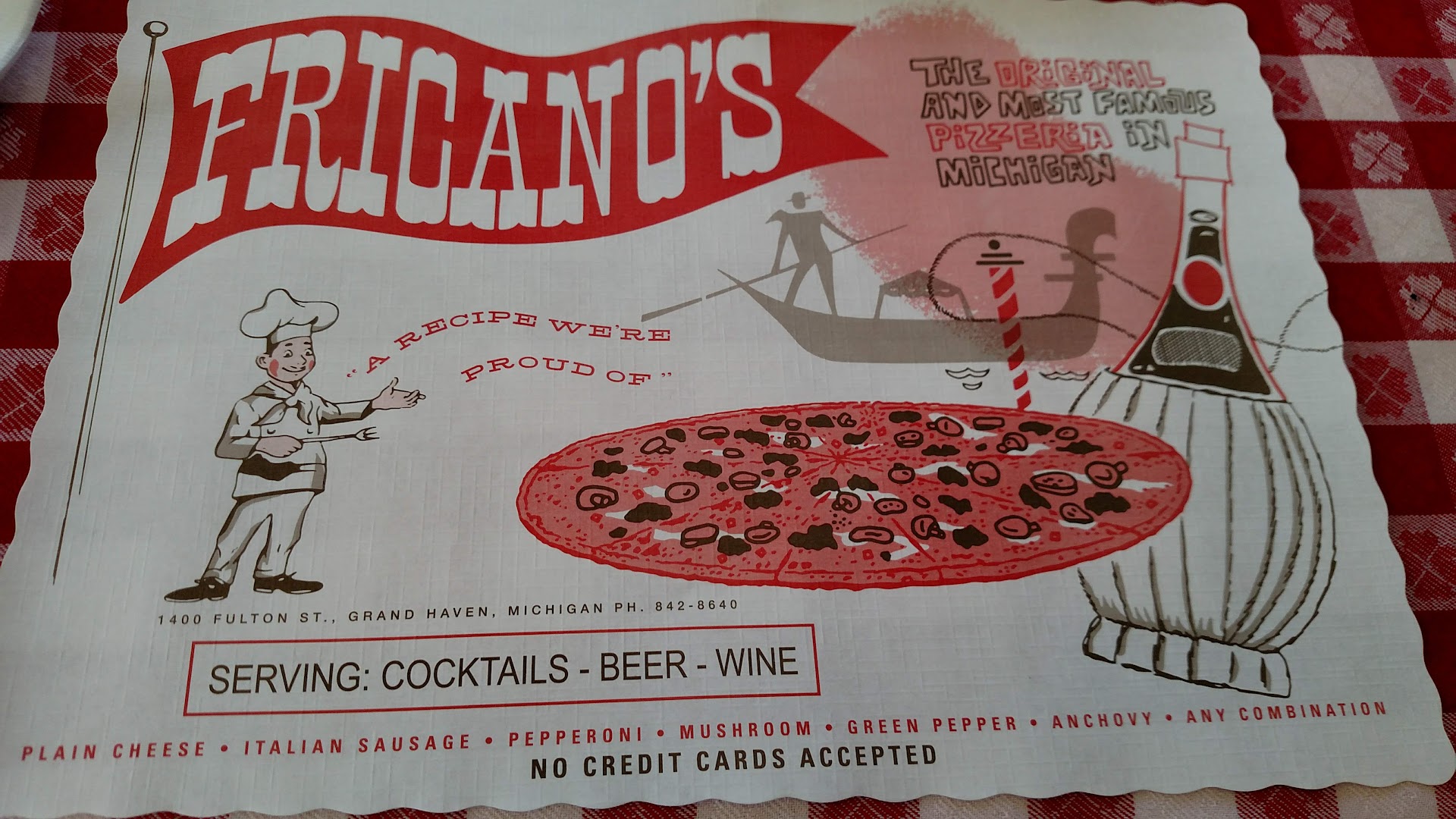 Read moreFood was good. Very busy for a Tuesday night, and ended up walking in with a lady who had a group of 8 that hadn't all showed up. I had a group of only 2. After waiting for about 10min and noticing a table open the entire time, I talked to the cashier and politely mentioned that I just wanted to make sure that I wasn't mistakenly included in the group of 8 and it was just me and my daughter. We waited for another 5+ min to be seated at the table which was available the entire time. This was a bit frustrating but being that it was as busy as it was, it was understandable. After this minor inconvenience the rest of the meal and service was very good. This was our first time at Fricanos so I didn't really know that there was only 1 option of pizza with 5 toppings available, Plain cheese, sausage, pepperoni, green pepper, mushrooms, and anchovies, or of course any one combination of these toppings. I was very surprised there weren't any other options, no bread sticks, appetizers, salads, just pizza and drinks. It was at least another 20min wait for the pizza which was okay because I was in good company. Pizza came hot! We ordered sausage and mushroom. Unfortunately mushrooms are from a can, but at this point I was so hungry and the waitress was so busy I didn't even bother asking questions. The sausage was top notch, and I would definitely recommend it. I wouldn't so much request the mushrooms again. Pizza was delicious and could've easily put down another one, but it was a good size portion for my daughter and I. Prices were good, and I will be back but next time I'm...