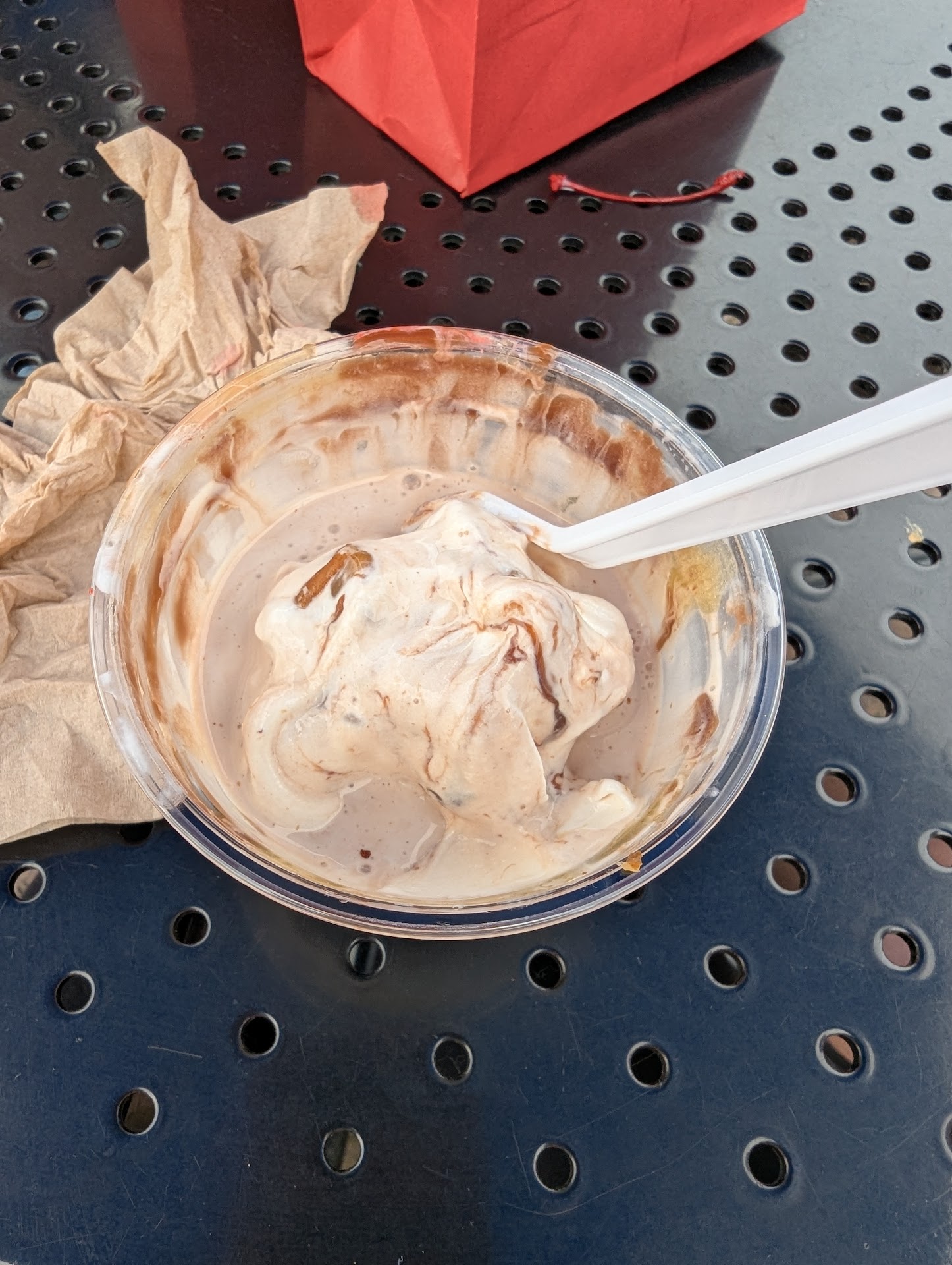 This was my first time to experience what Norm’s on the channel is all about. I was expecting to see and hopeful, that the new business kept at least a couple if not more, classic menu items from the original Dairy Creme as a tribute (they are using the same name after all). Maybe I missed them? Instead, the first largest sign that caught my attention is about what not to ask for (switch cup size or something). Nothing real special struck me on the menu that says ‘welcome to the waterfront in Grand Haven’. I defaulted quickly to their blizzard (DQ branded name). Plenty of okay ice cream for the size filled the cup, but there was about 1 teaspoon of fun mixed in. I could barely find it.