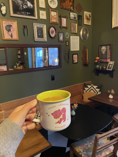Me and a couple friends found this gem while looking for a place to grab coffee on our way home from a weekend trip. It took us a little while to figure out it was inside Off the Record but the scavenger hunt was well worth it! It's been a long time since I've found a place with such a familiar and welcoming atmosphere. My jade snail tea was absolutely perfect and I felt like everywhere I turned I found another little hidden treasure. The owner at the front counter was more than happy to make some recommendations and I left with a couple records and new favorite place. It's eccentric in all the best possible ways and I can't wait to visit next time I'm in the area. You can really tell a lot of love has went into making OTR the refuge it is and I definitely recommend...