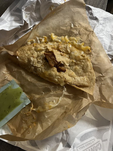 In addition to getting what im guessing is food poisoning to some degree, it's a 50/50 shot whether we get actual tacos, or a weird soupy mess of lettuce cheese and grease. After a few months of finally wanting to trust Tbell again, we just ordered. And let me tell you, the disappointment of getting tortilla soup wrapped in said tortilla was real. There was more cheese than anything else on both of my soft tacos and the meat was barely existing. It was 80% cheese, 10% wet lettuce, and some meat chunks. My cheesy bean and rice burrito + beef was literally beef and cheese and had 0 rice. This was the size of one of my soft tacos and also resembled soup. My boyfriend's hard tacos were soggy after the 3 minute drive home and it was just... wet? The bottom of the hard shells were barely holding everything together and he said biting into it was slimey.