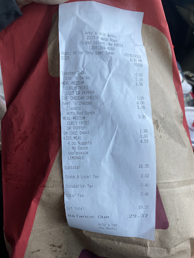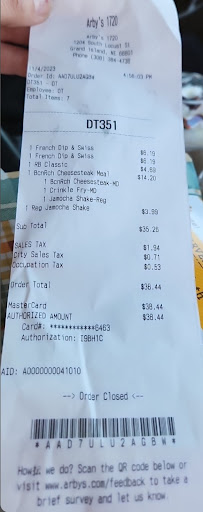 Read moreOur order wasn't correct. It was simply the wrong kind of fries, but our jamocha shakes didn't have flavor. I called Arby's and the mouthy little gal that made our order answered the phone. I tried to explain that I was basically calling, so the next shake they made was made correct. Maybe something ran out like a pop machine can with syrup or carbonation. Instead, I got a mouth full of "Let me tell YOU." I could have gone back and had them fix it, but that's such a pain. Here's a picture of the receipt. Let's see if Arby's cares about their customers' feedback. The food is always good here. But I won't tolerate any, "Let me tell you" the customer is always right in most cases. I wasn't rude or placing blame. Just trying to give...