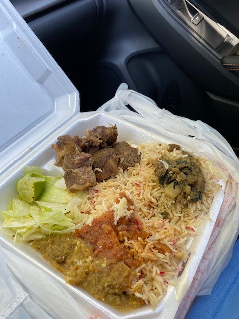 This food was wonderful! Get out of your comfort zone and try Somali food! It is definitely a nice change of pace. The meat was flavorful and tender. The rice was fragrant and quite tasty, and the three sauces on the rice were very different from one another and quite appealing. It made for a meal with nice variety. My daughter and I highly recommend eating here, or at least getting it to go.