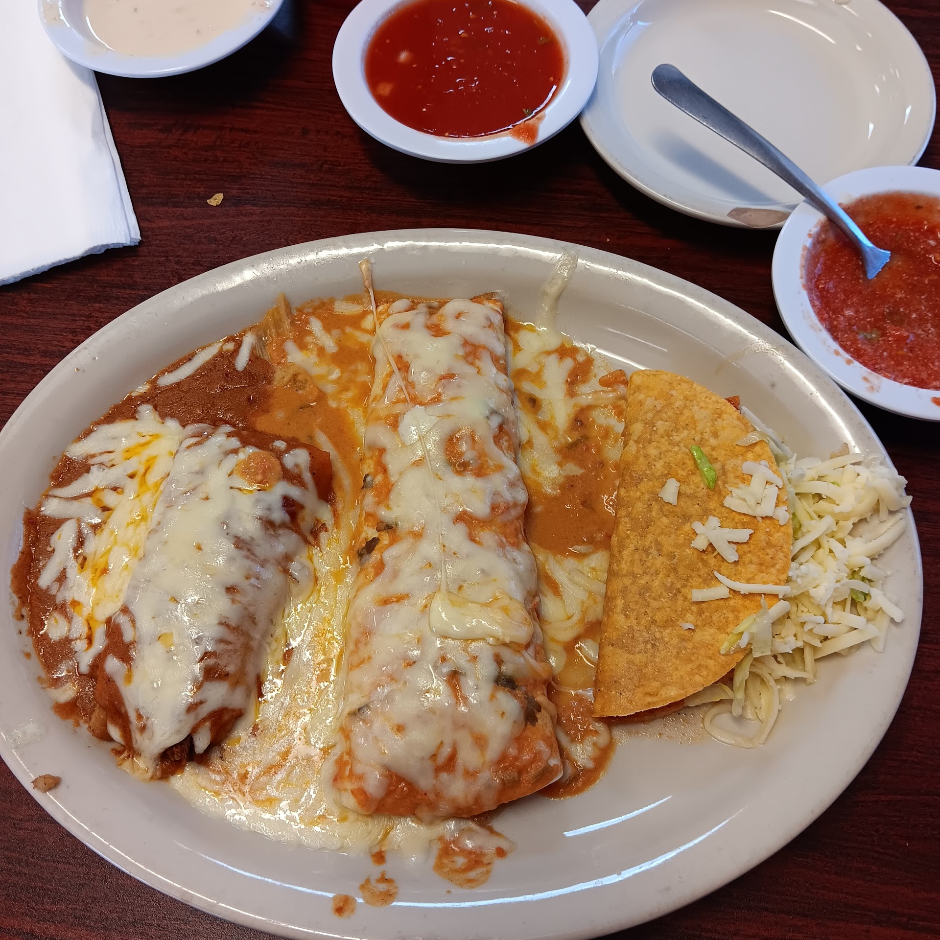 Read moreHad dinner and ordered the crispy burrito. After the waitress dropped off our food we never saw her again. It wasn't even busy with maybe 3 or 4 other tables occupied. The food was terrible. It was served with brown avocado slices (which are fine for eating at home but if I have to pay good $ for my food, I want fresh). The white cheese sauce was chunky and had a weird texture. The minute I cut in to my burrito, grease ran across my plate. We waited for our check but had to go to the desk to pay or who knows how long we would've sat there. When asked if everything was good I honestly told her. She acted surprised but did not say a further word to me. There was no apology or anything. She took my money and I left disappointed and hungry. This is one of our regular places to splurge and I won't go back for a long time if...