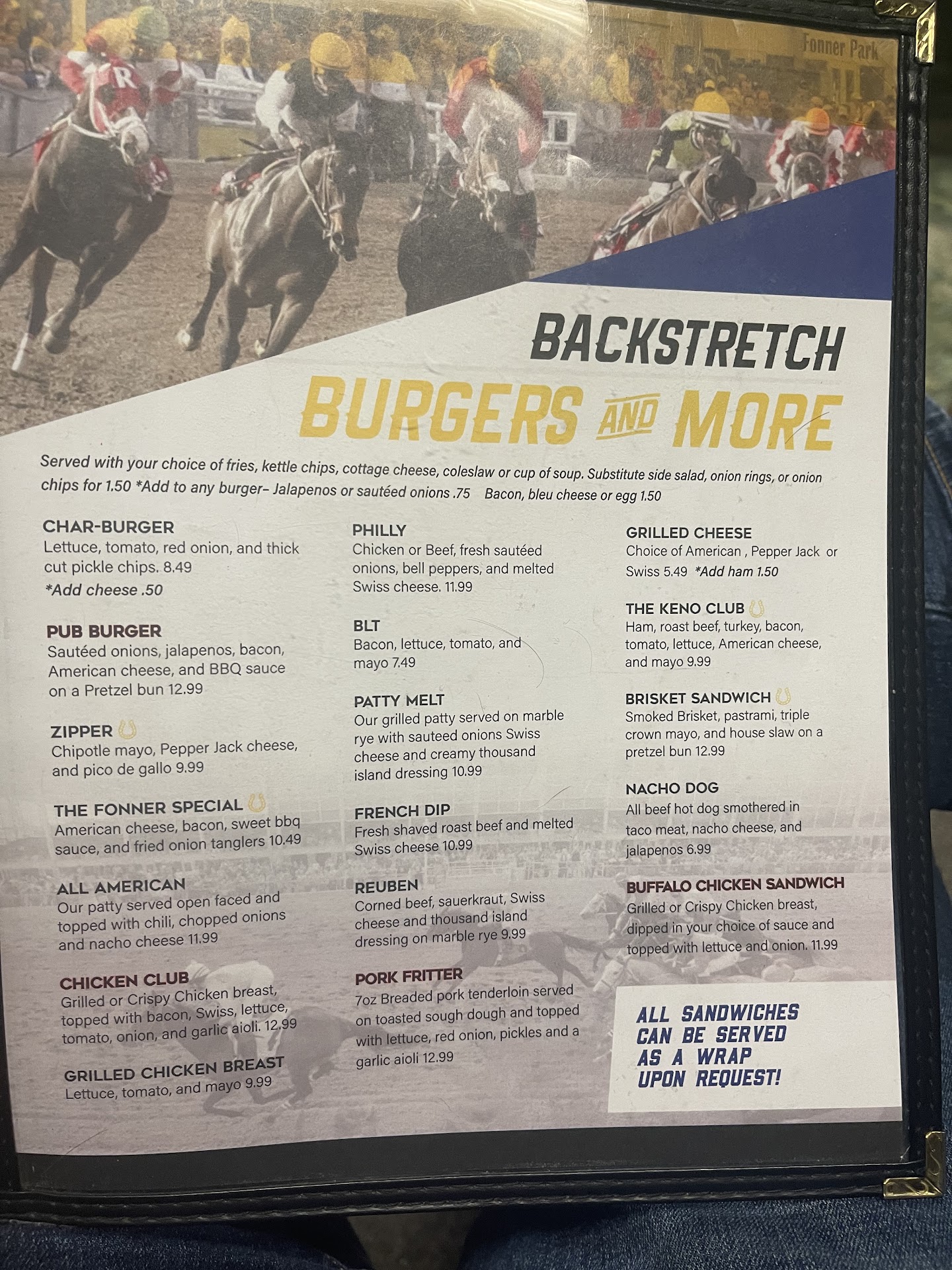 Read moreWe went to Fonner park to play keno and to eat dinner. We sat there for over an hour and not one waitress came over to see if we needed anything, they were to busy chatting it up with the bartender. This happened the last time we were there as well. We are not happy at all with the service!!! So luckily they have Keno Else where!where we can actually get food...
