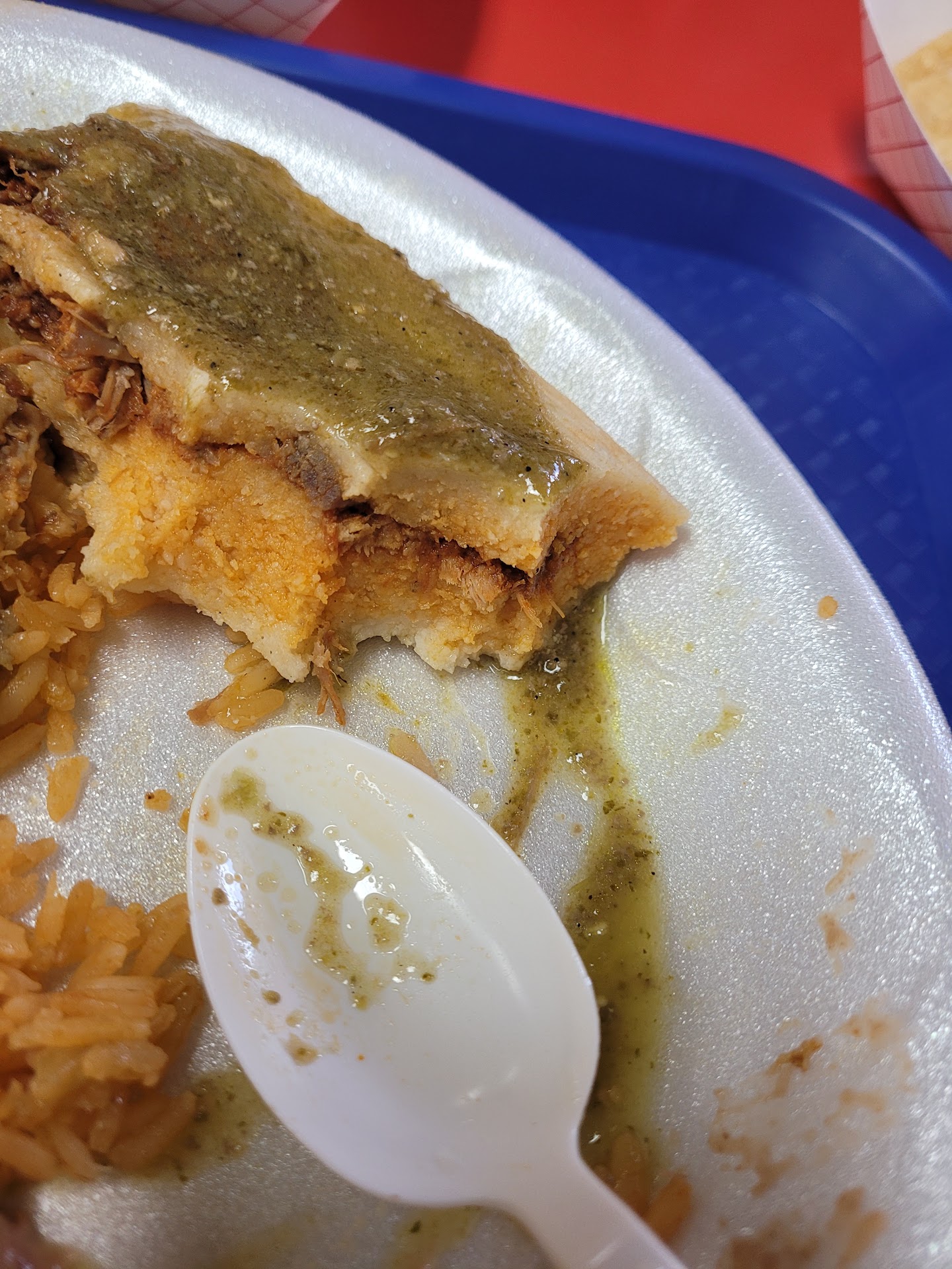 Read moreI ate here for the first time today. The menu offers a good variety. I ordered a 2 enchilada meal. You get to choose your filling, so I chose the shredded beef and the pork. I wasn't sure whether to get the red or green sauce...she gave me a sample of the green, and it was hands-down the most delicious chile verde sauce I've ever tasted! The rice is very good, & I normally don't care for refried beans, but their's taste better than any I've ever tried. The shredded beef is delicious also. There is a huge salsa/condiment bar with every Mexican topping you can think of. The salsa is outstanding! They also provide free chips. The prices are mid-range for an order-at-the-counter eatery. Overall, the food is home-made, authentic, and delicious! I would highly recommend...