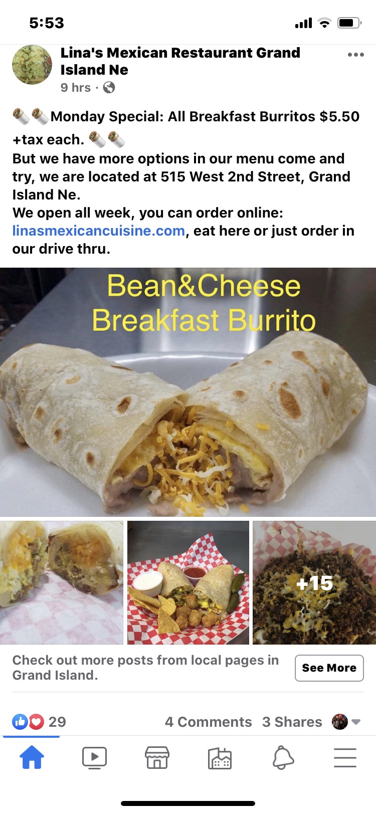 Read moreIf you have never been to Lina's you are missing out! I visited this restaurant for the first time about six months ago and now I frequent here at least once a week! This place never disappoints! The food is authentic and absolutely delicious, plus Lina's offers affordable prices and perfect portions! The team members here are very helpful and EXTREMELY friendly, they make you feel right at home. My favorite here is the Carne Asada Fries! Crispy hot fries smothered in delicious steak, guacamole, sour cream, and shredded cheese! Your food is always served in a timely fashion and the establishment is always kept very clean! Thank you Lina's for being my favorite restaurant in all of Nebraska! This place is...