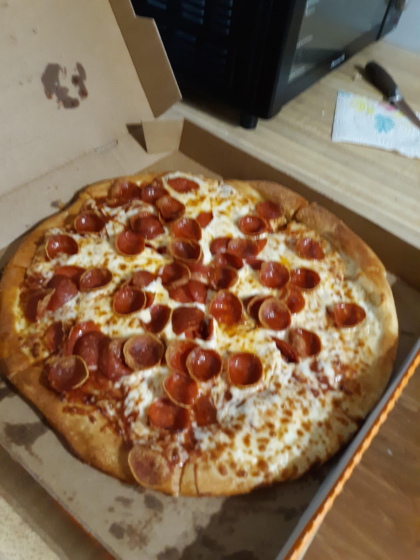 Zero Stars. Worst pizza purchase ever!! Ordered online said it would be ready in 15min. Arrived to drive-thru shortly after ready time given, was told it wasnât ready but will be soon. Waited 30min , went inside to check on it, found myself with 5 other unhappy customers. Asked the counter person for a status update, he couldnât find the order, then finally did, told me it would be just 5min more. After 20min goes by another customer checking on their order had been waiting for a hour, gives up and wanted refund, 5-7 days for a refund. So after that exchange I ask again about mine, âalmost readyâ another 15min goes by and finally I have my pie, 65min after online ETA. 6 employees working, not a hustle in 1 of them. Fine. Letâs get home and enjoy this long awaited pizza pizza. Open the box and find the pizza soaked in grease, could only eat 1 slice because of it, so much that it put grease on our counter. I checked my car seat sure enough my passenger seat has pepperoni pizza grease stains on it. $10 pie cost me a detail and 1...
