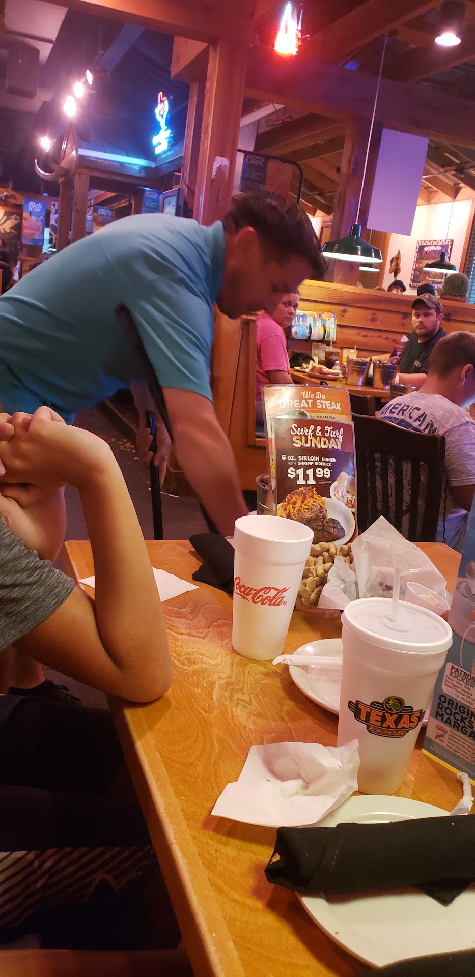 Read moreIf I could leave 0 stars I would. I love Texas Roadhouse but don’t get to often since I don’t live near one, meaning I drove over an hour to only be disappointed. My server was easily the worst server I’ve ever had. She only came to our table 3 times during our visit. We got sat down and our drink order and an appetizer order was placed (first time server was at our table), we got our appetizer before our drinks and had to wait another 10 mins for those (second time our sever was at our table), we made our food order and when the food came out it looked okay. I cut into my chicken only to see it was raw... I started eating my sides waiting for my server to check on us to get my chicken cooked more. After my fiancé was done with his meal (I told him to keep eating) I finally just had to get the attention of another server.. she took my food back for me and apologized. Our drinks were empty the whole time during our “meal”. When my chicken arrived after another 20 minutes (if something is sent back it’s supposed to be first priority) but I cut into it again and took a bite, I have never had a piece of chicken so dry I couldn’t even eat it I had to spit it back out. I asked another server to see if I could talk to the manager, he came over and asked what he could do. He was very polite, I told him the chicken was so disgusting I would pay for the sides but not the chicken and he agreed with me saying that the chicken didn’t even look appetizing what so ever and took the whole meal off the bill. The third time our server came to the table was to hand us the check where I asked her to get us refills as my chicken was too dry I was thirsty and we haven’t had anything to drink for a while now. My server didn’t even know my chicken was sent back, she didn’t know it was taken off my ticket. We finally got our drinks and were just so dissatisfied and disappointed we just paid and left. I definitely will not...